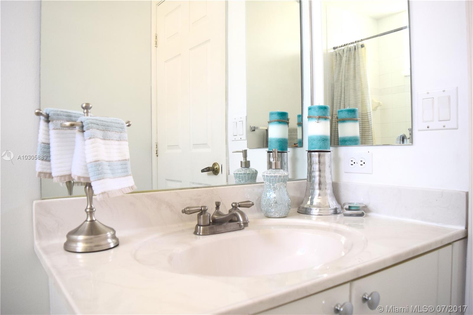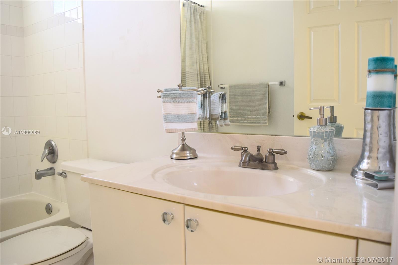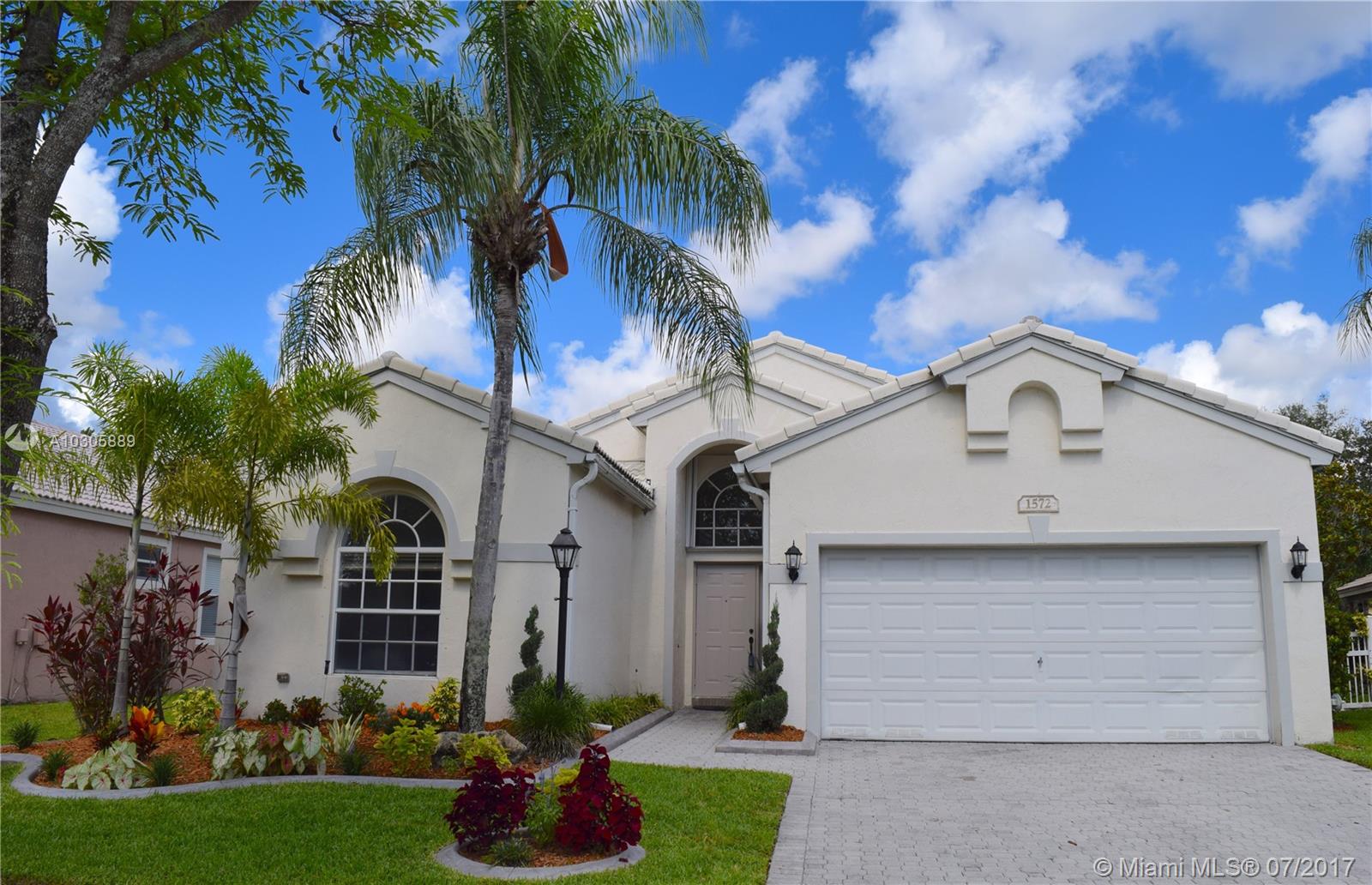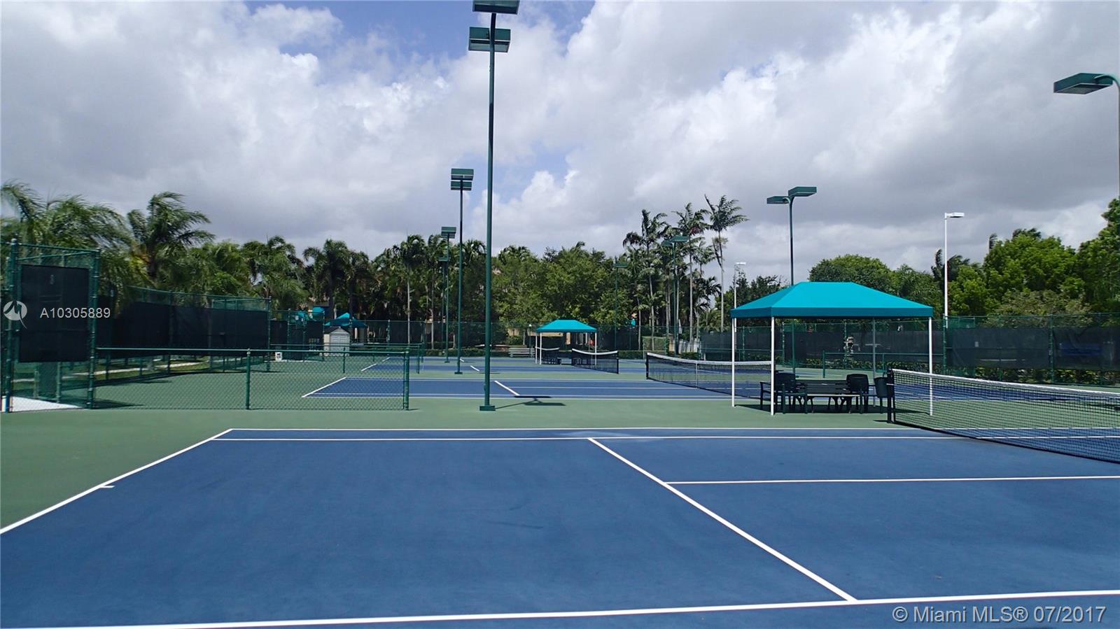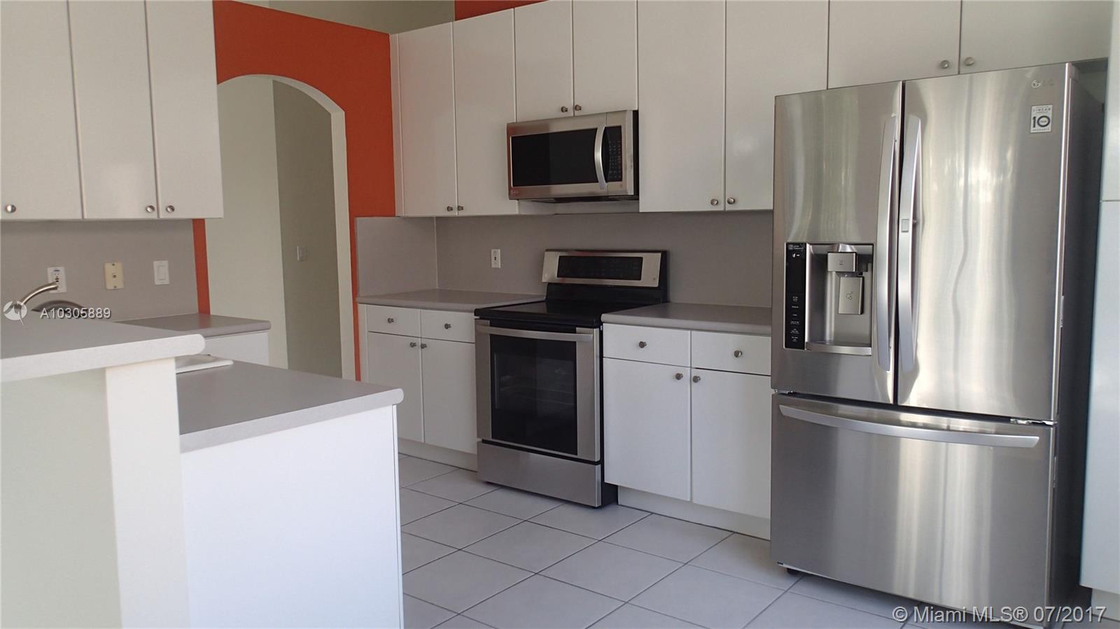Bright Teakwood Model with open floor plan in the sought-after Pembroke Falls. This 3 bedroom/2 full bathrooms has tile floors throughout the entire house. BRAND NEW AC with programmable thermostat; BRAND NEW Stainless Steel LG Kitchen Appliances; French door refrigerator with door-in-door feature and bottom mount pull-out freezer drawer; BRAND NEW Samsung Washer and Dryer; Gas water heater and gas connection for outdoor BBQ. Accordion Shutters and fenced back yard. No neighbors in the back. Walking distance to the community club. Close to hospital, mall, restaurants, shopping centers and easy access to I-75. Security gate 24 hours. Homeowners Association fee includes internet, basic cable, monitoring of the alarm, maintenance of common areas and access to the amenities of the clubhouse.