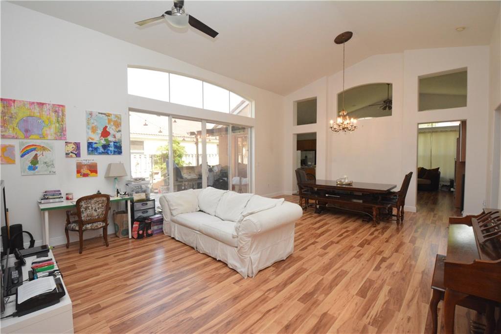 Lovely one story home in the resort style community of Sunset Lakes. Huge fenced in backyard with plenty of room for a pool. Side of house has a large deck with built in benches and an overhang, perfect for entertaining. Gorgeous new flooring throughout main living areas. Great lighting in this open floor plan. Huge kitchen has large center island with storage and seating area, separate breakfast area and lots of cabinetry. Newer washer & dryer. Home is move in ready.