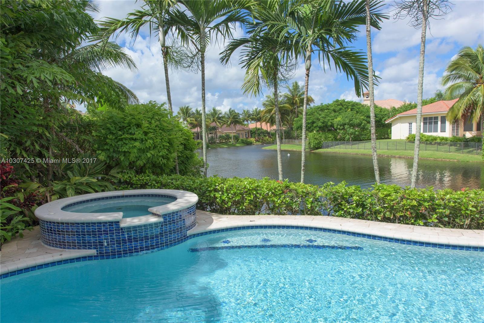 Elegance abounds in this stunning residence that ftures 4bdrms, 3.5bths plus office*Gated courtyard entry opens to stunning double glass doors*Gleaming wood floors are featured throughout all the main living areas, office & master suite*High volume ceilings & large spans of glass make this an open & airy floorplan*Enjoy the chefs kitchen while viewing the beautiful water views & pool*Designer wall unit in library with built in book shelves & double sided desk*Marble master bath, large patio & heatd pool & spa open to water & fountain views.