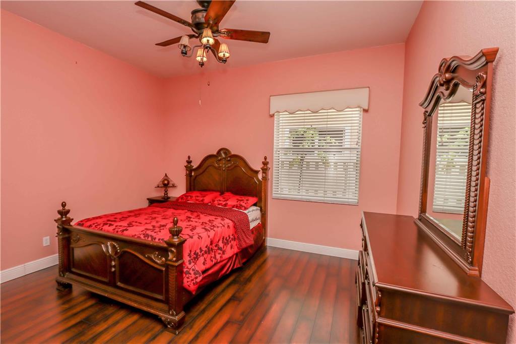 GORGEOUS TWO STORY HOME IN RESORT STYLE GUARD GATED COMMUNITY. TILE FLOORING ON THE FIRST FLOOR, BEAUTIFUL BRAND NEW DARK LAMINATE WOOD FLOORING ON STAIRS & THROUGHOUT UPPER LEVEL. EXPANSIVE MASTER WITH FRENCH DOORS THAT LEAD OUT TO COVERED BALCONY WHICH RUNS FULL LENGTH OF HOUSE. ONE BEDROOM & FULL BATH ON FIRST FLOOR. LARGE KITCHEN W/ CENTER ISLAND OVERLOOKING LIVING ROOM. LARGE FORMAL DINING ROOM GREAT FOR ENTERTAINING. COVERED PATIO AREA, FULLY FENCED BACKYARD FOR PRIVACY, ROOM FOR A POOL.