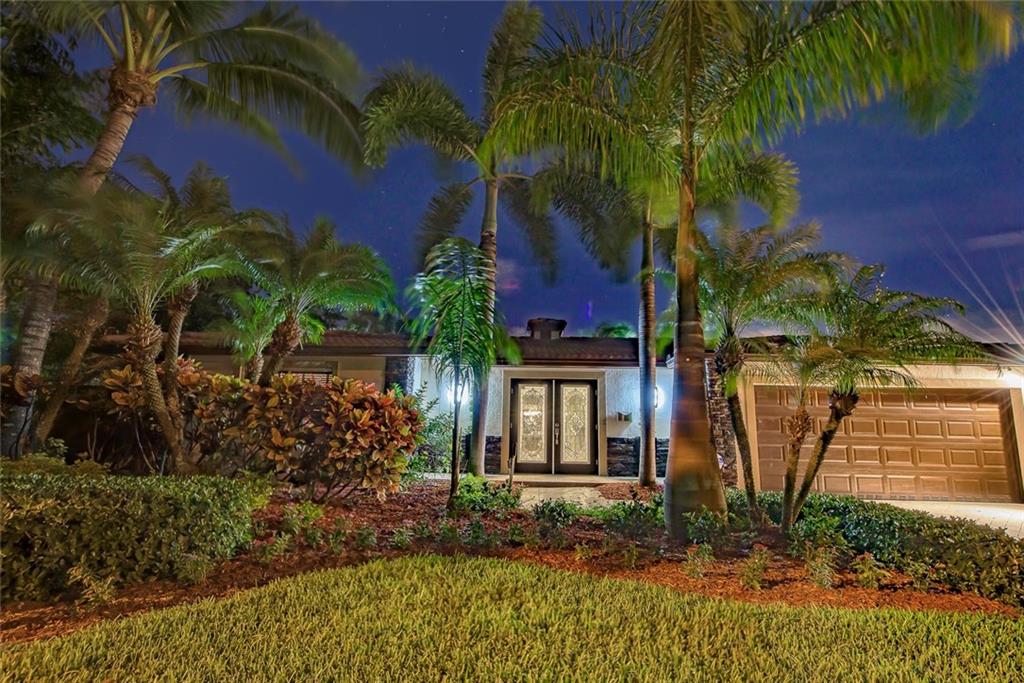 Reduced for immediate sale. Beautifully updated with a transitional feel, this home is South Florida living at it's finest. Featuring two bedrooms and three baths. Espresso colored tile floors throughout the home with an open and relaxing feel.The resort style backyard includes loads of palm trees and landscape lighting for nighttime entertaining. The kitchen is open to all the living areas including formal dining room, living room and family room/office. Super private, fully fenced backyard.