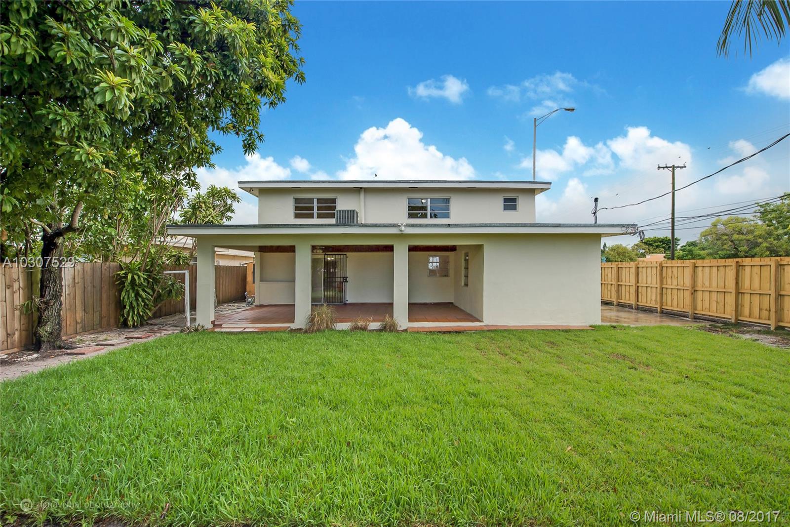 Beautiful remodeled Large home in quiet neighborhood 5 min from airport 15 min from Doral/Miami New kitchen & stainless appliances granite counter tops Italian marble on kitchen floor, new porcelain tile downstairs & polished terrazzo floors in dining room New paint inside & out upgraded bathrooms maintained windows, New AC downstairs newer AC upstairs new light fixtures, 7 ceiling fans 3 covered patio decks in front, top floor & back 1 new washer total of 2 refrigerators 2 washers/2 dryers New landscaping/sod Top floor can be separate in-laws quarters or income producing, can open side to be a private entrance for 2nd floor. Large backyard with shed, concrete slab for parking vehicles or boats Side parking for 4+ vehicles or a boat New 6' tall wood fence for privacy,great priced home