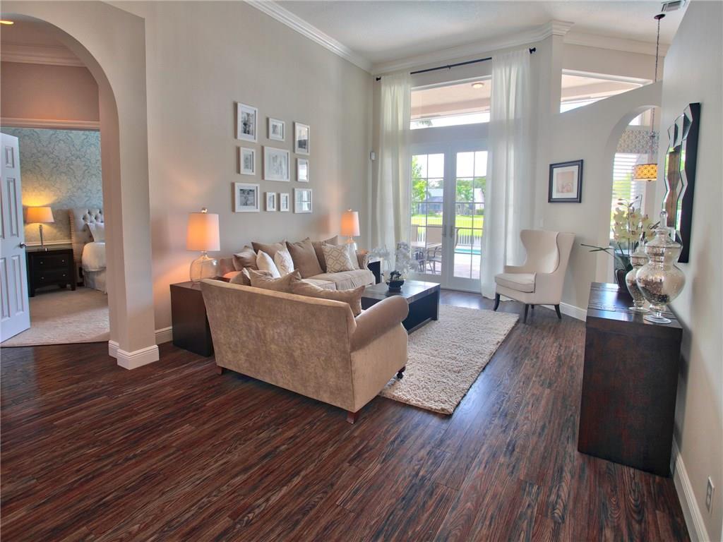 Back on the market! Absolutely stunning turn key 4 bdrm/den 3 ba, 2 CG, pool home located in highly sought after Grand Reserve gated community. Features professional landscaping & lighting, 12' ceilings, Tybee Island oak flooring, 42” kitchen cabinets, granite counters, stainless appliances, crown molding thru out home, surround sound, high end French doors, large truss covered patio/pool area fenced in, gorgeous lake view. Clubhouse amenities incl: pool/billards/fitness center/TOT LOT. Excellent schools.
