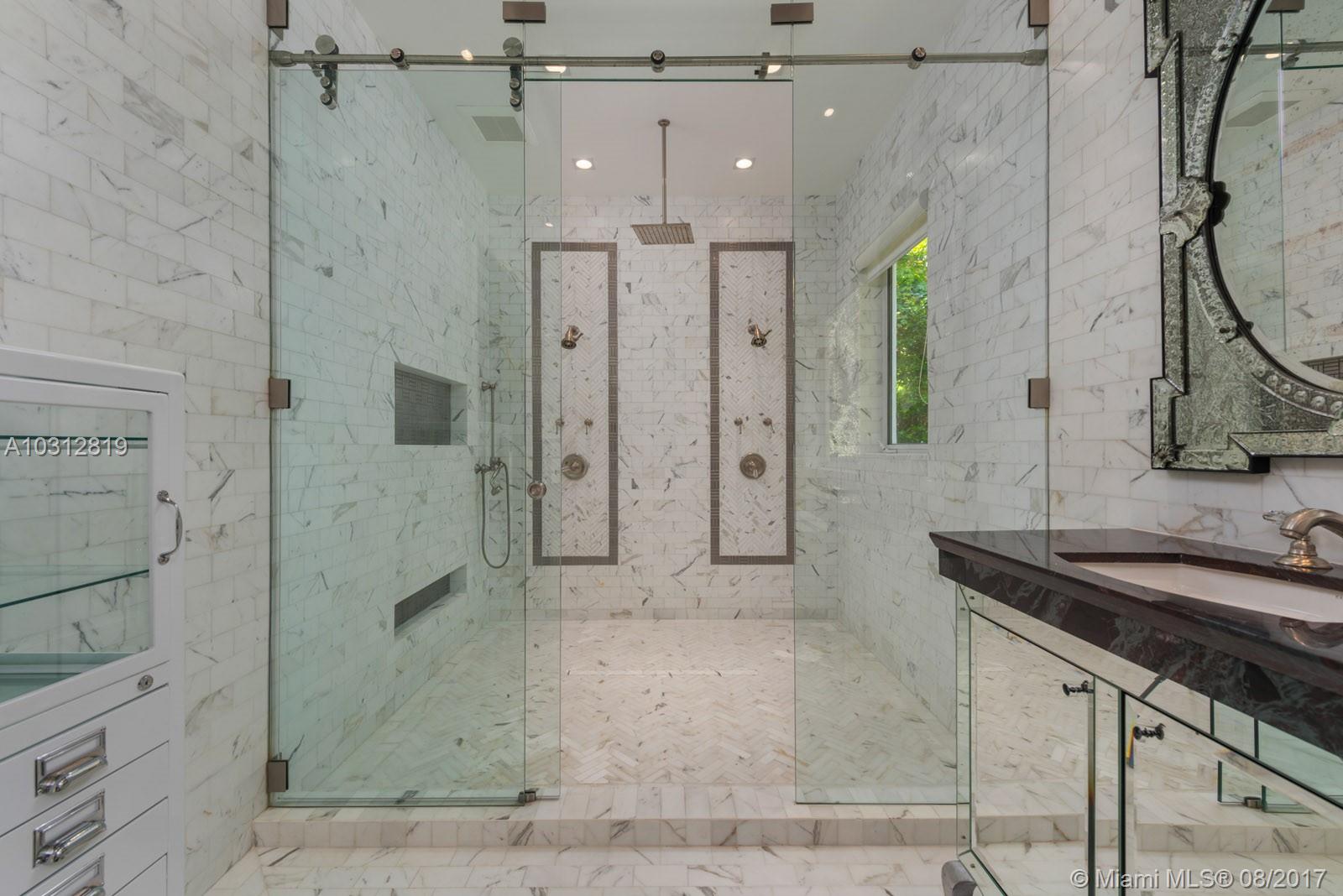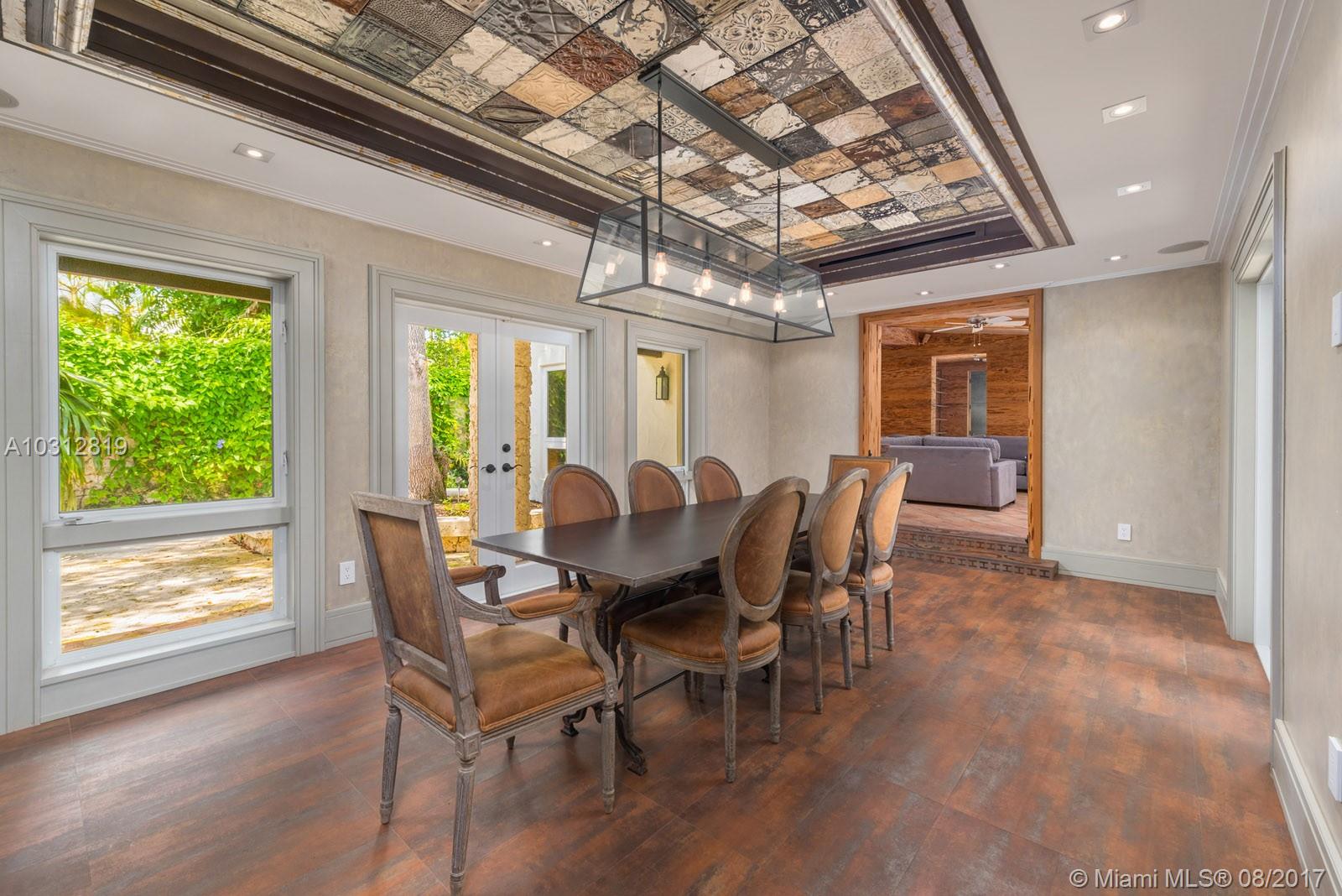 This South Gables showcase property is immaculately maintained, turn key on a gated, builder's 1/2 acre lot. Combining a modern esthetic with classic Florida architecture, the use of reclaimed woods, Onyx, cast cement, retro industrial elements & period accents riff w/pecky cypress, porcelain tile and native limestone. Sumptuous master suite w sitting room & fireplace, heart-of-the-home gourmet kitchen; formal living & dining rooms; wine salon, library or gym & Glass-beaded pool & Jacuzzi, covered outdoor living w summer kitchen & pizza oven, Sonos sound system, gas lit lamps, impact windows/doors; full-house generator; 1,000-gal propane tank.