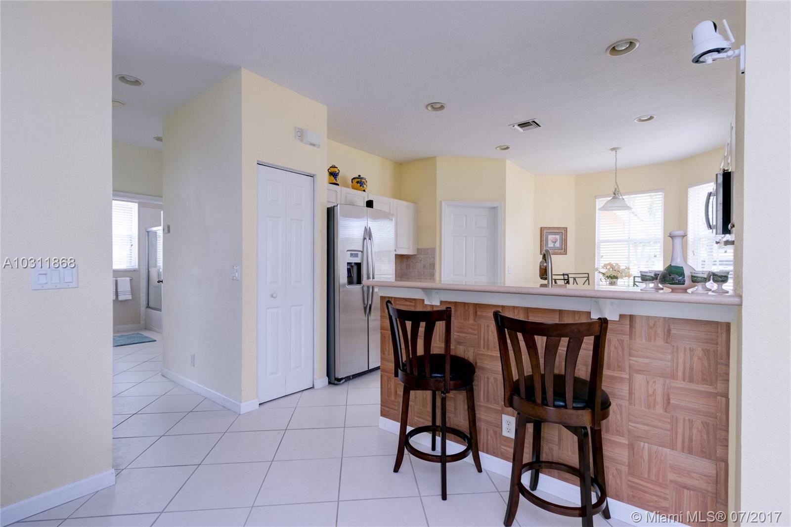 Aspen II Model 4/3 Single Family House at Preserve I, Savanna. Open floor plan with enough space and lights for all. Two master suites with full bathroom and walk-in closets. Kitchen with nice open breakfast with Bay windows, stainless steel appliances. Ceramic and carpeted and laminated wood floors. A/C from replaced on March 2013. 2 Garage spaces. Private, fenced backyard and Porch has wood deck floor, great for entertainment. Location, Location this home is in one of the best family gated community in Weston, Best School District, close distance to major Highways.