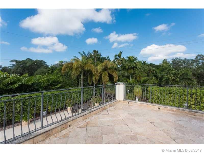 Beautiful finishes and prime location on gated acre in north Pinecrest. This 2 story 6BR/5.5BA home includes library, bar, gym & 4 car garage. Lofty ceilings shed abundant light throughout the home. Marble & wood flooring. Enormous Chef's kitchen overlooks resort style pool, Jacuzzi & lighted sports court. Elegantly appointed Master suite. Fireplace, generator & more. Lushly landscaped on very quiet street.