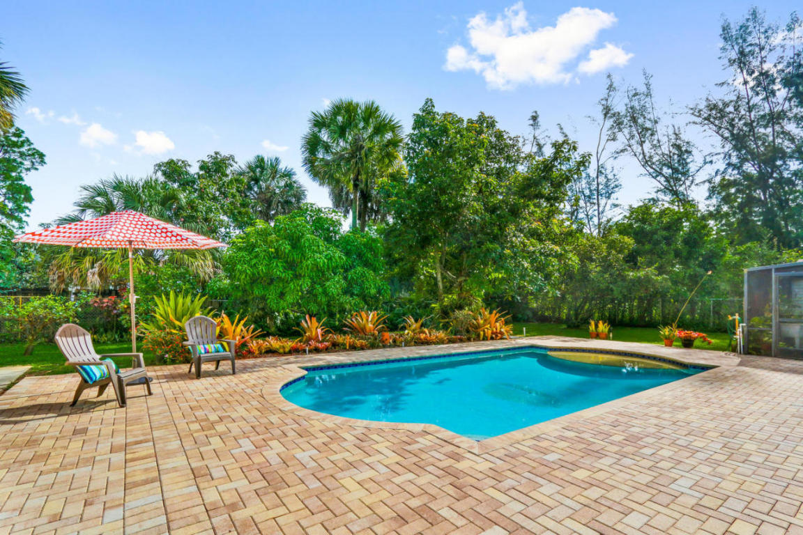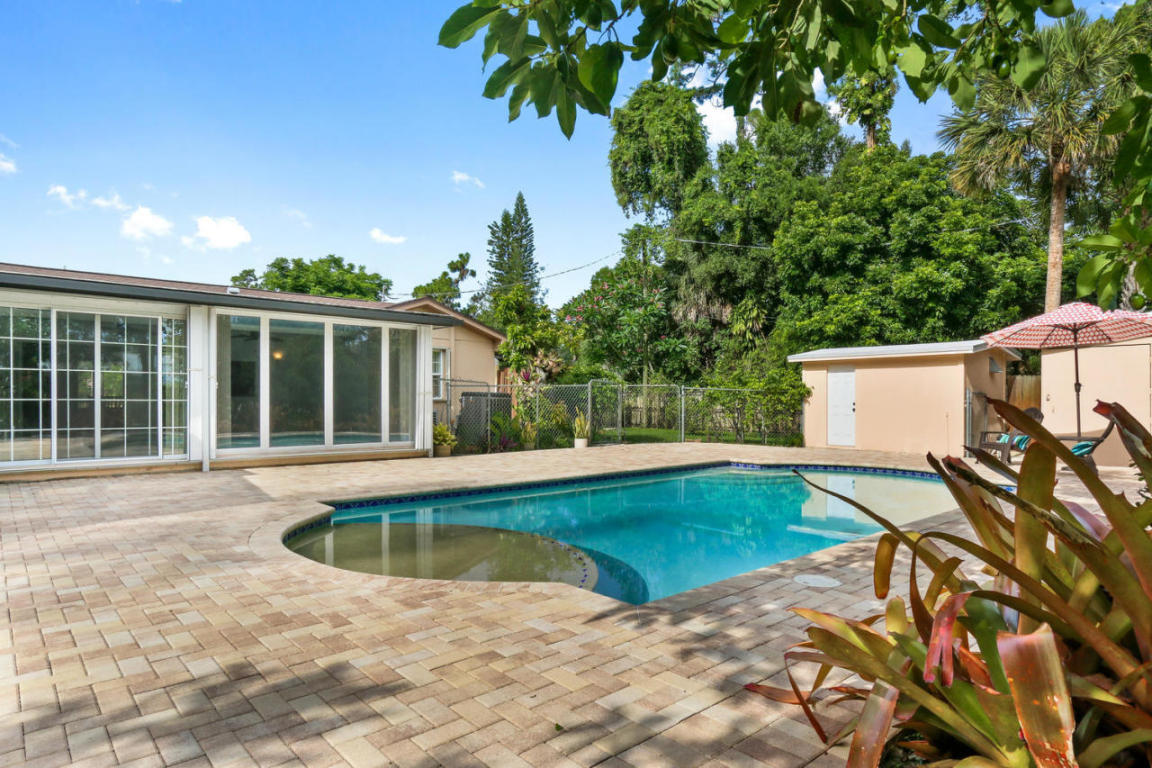 Wonderful renovated & spacious 3+/3 Pool home on 1/2 acre with NO HOA fees! Enjoy a hidden unincorporated pocket within WPB with super easy Turnpike commuting. Fresh paint, newer roof, pool, kitchen with granite, bathrooms, zoned AC, tile & wood flooring! The 3 car/high ceiling garage/50'x 16' WORKSHOP & 3+ motorcycle garage & designated RV/boat carport & 3 sheds & long driveways for 8+ cars, and a Florida room with sauna & hot tub will cover all your needs for SPACE, BUSINESS and RECREATION! IN-LAW apartment with a private entrance and an adj. large bonus room with kitchenette/wet bar can be used as a family room, play area, game room or office space. Fully fenced, private backyard with fruit trees. Welcome to this little piece of paradise!