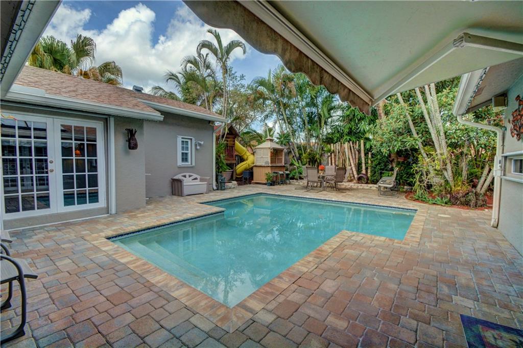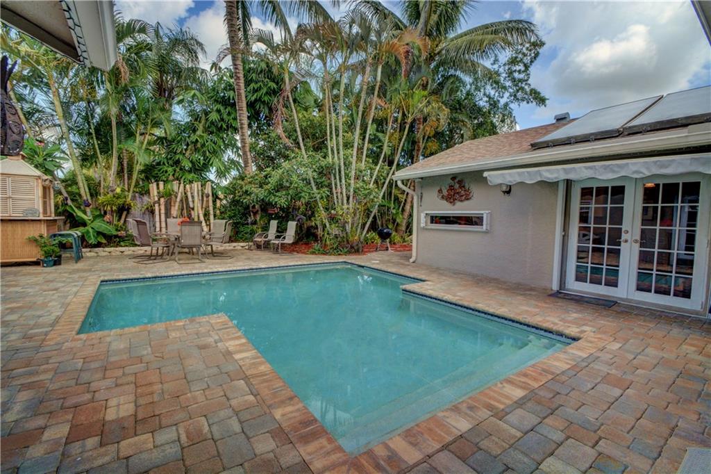 This magnificent, 4/2 Key West gem features: Upgraded kitchen w/SS Appliances, 6 burner gas stove, granite, oversized porcelain sink, wide plank old NE Pine floors, built in wine cooler, separate laundry room, gas dryer, new hardwood floors in bedrooms, crown molding, accordion shutters, French doors thru-out, (2) brand new remodeled bathrooms, resort style pool & backyard, upgraded electrical panel & breakers, newer A/C, freshly painted & upgraded hot water solar panels w/140 gallon storage tank. No HOA!