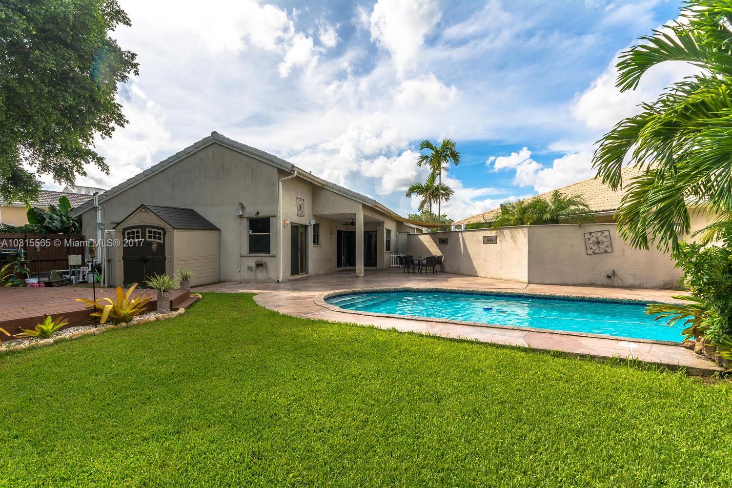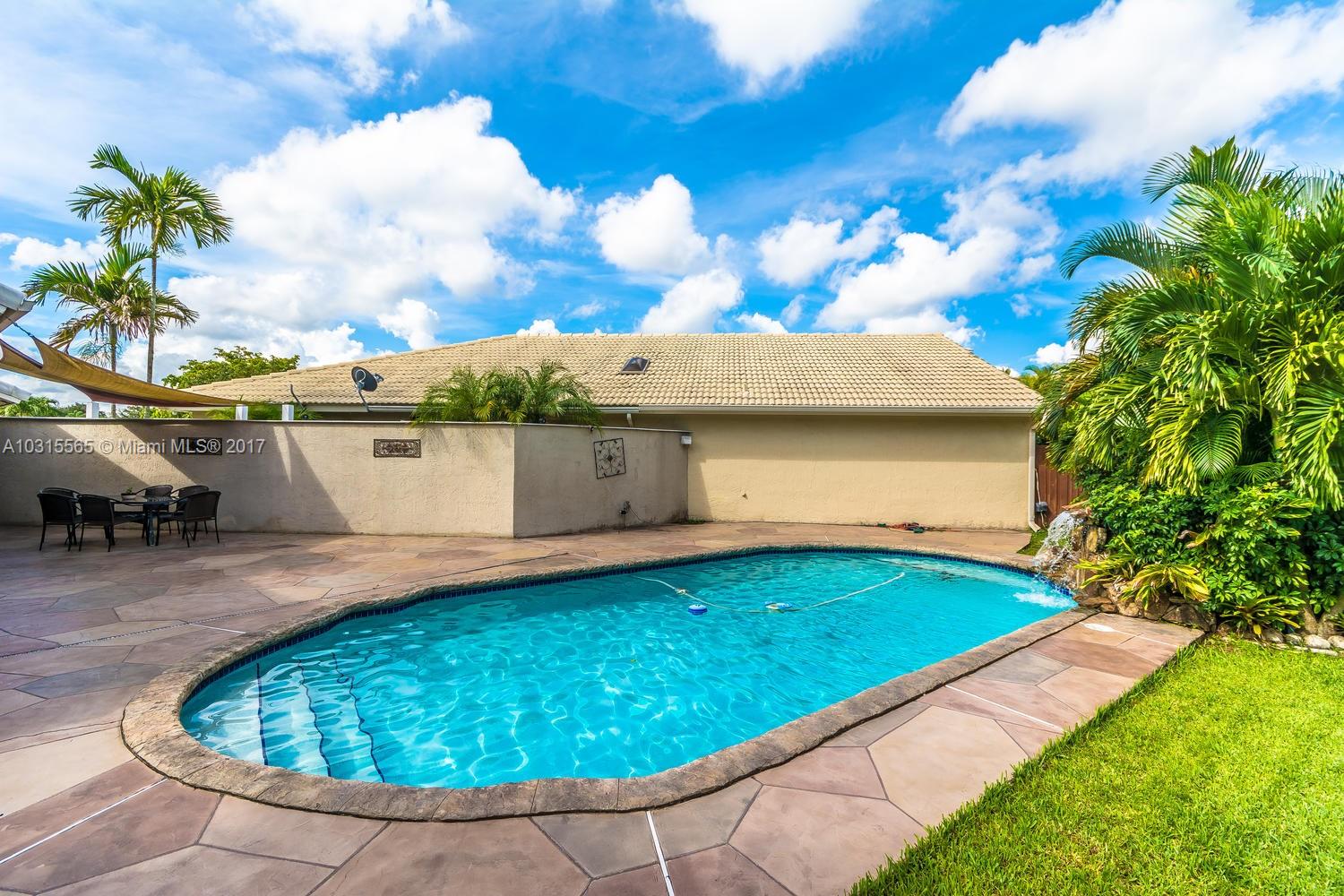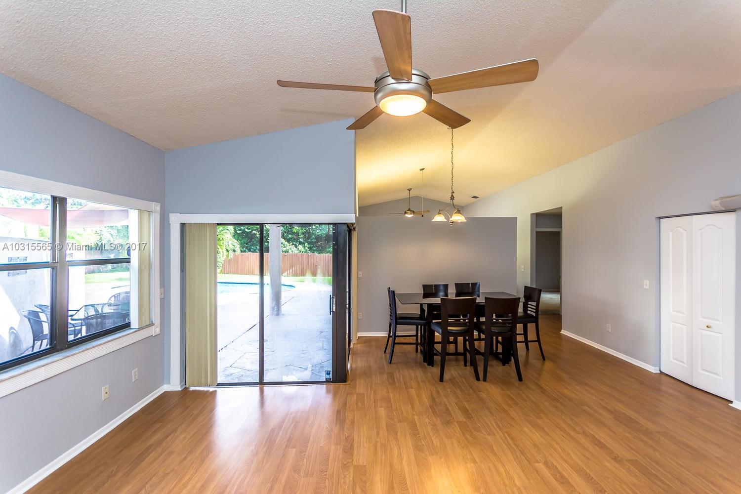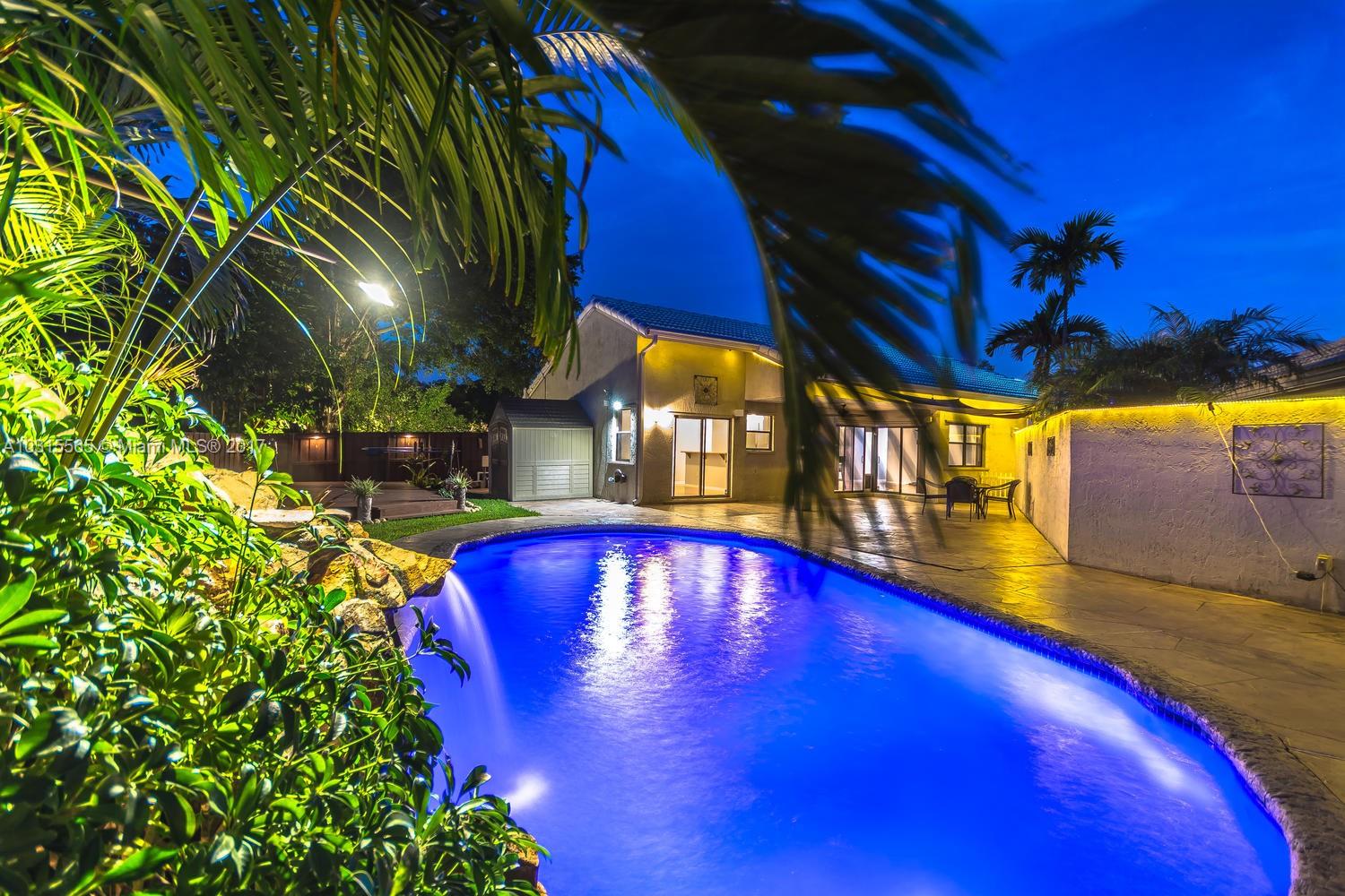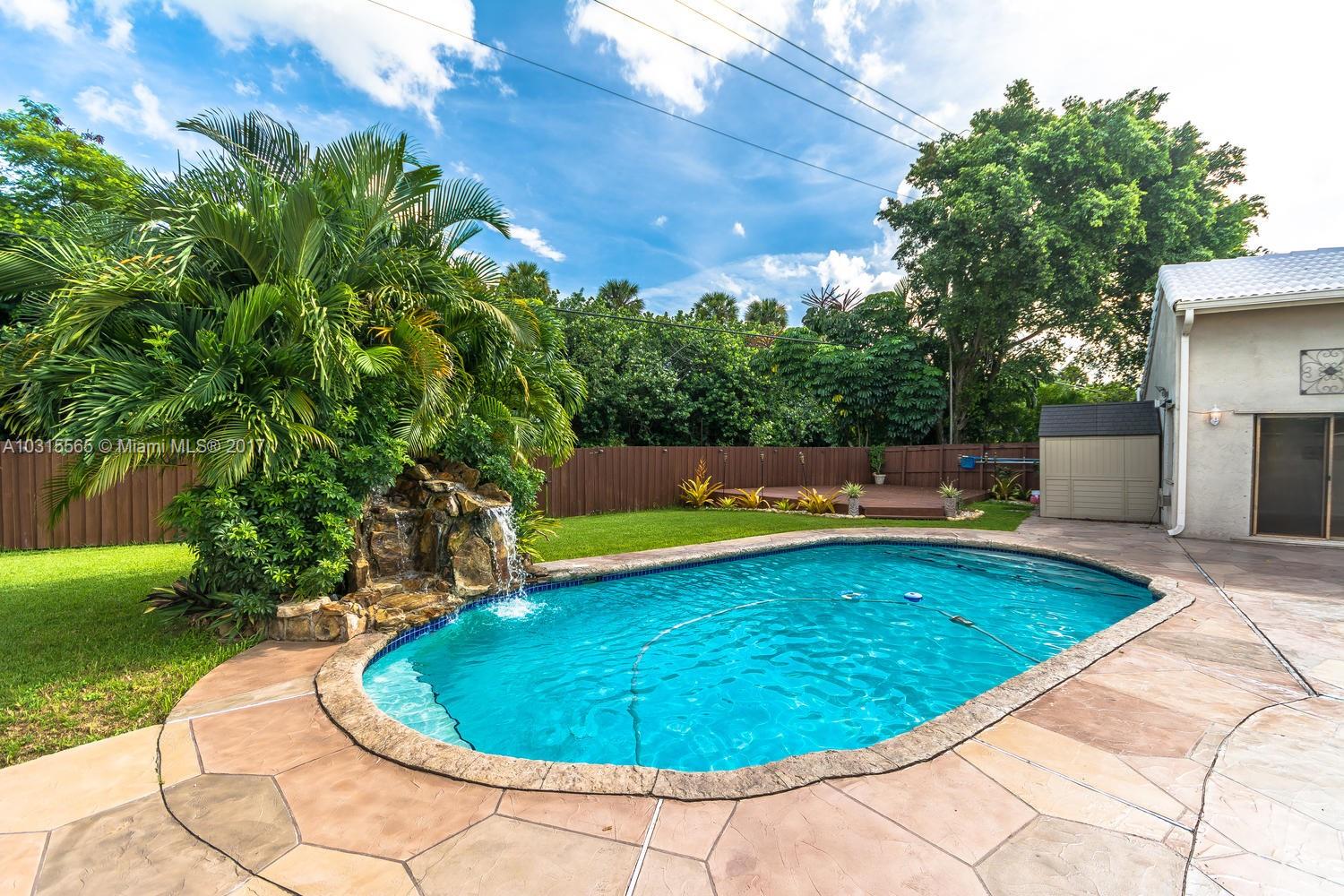 Warm and inviting 3 bedrooms, 2 bathroom home in sought after Falcon's Lea with 2 car garage and & lots of storage space. Huge oversized lot with a large pool with rock waterfall as well as large patio and wood deck for entertaining. Freshly painted inside. Excellent location in Davie, In the West Broward High School zone known for A+ schools, equestrian lifestyle and many parks. Unbeatable value as home and investment.
