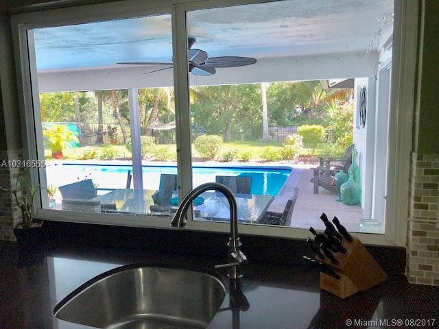 This rarely available waterfront home in the gated community of El Dorado Estates can be yours today! The home features 4 bedrooms and 2 full baths, updated kitchen with stainless steel appliances, renovated bathrooms with access to the pool, crown molding throughout, and new window treatments. Patio has new ceiling fans, motorized drop down insect screens and new flat roof (screens + roof both carry a 10 year warranty). Pool was also recently resurfaced. Oversized lot features a mango and palm trees and an extra wide canal - everything you need to keep cool in this tropical paradise. Community amenities include tennis courts, new playground and activities throughout the year. Close to A+ Schools, Shops and I-595 and Turnpike. Easy to show.