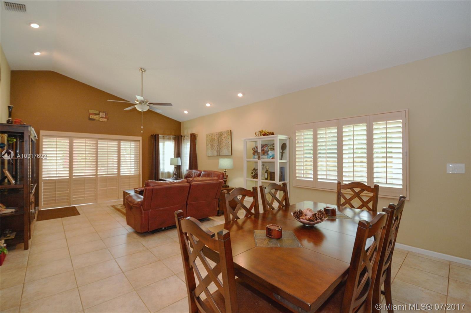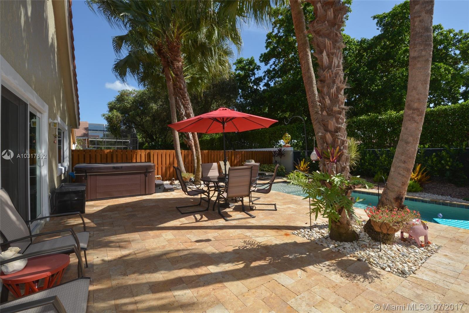 This Meticulously Maintained Pool Home is a Tropical Oasis nestled in the heart of Plantation's Premiere Jacaranda District. Prime Location in the gated "Sunset Cove" community, this property is extensively upgraded with high end appointments such as Hurricane Impact Glass throughout 9/14,All Tile in Bedrooms 2/15, New A/C 6/15, New Pool with Sun Shelf Huge Open Patio w/ Tumbled Marble Pavers, Palm Trees, Lush Landscaping..Perfect for Entertaining in South Florida Style! Inside, warm inviting colors, high vaulted ceilings, Upgraded Kitchen with Granite, SS Appliances, Mosaic tile backsplash, crown molding, Plantation Shutters throughout. Extra long driveway, Fenced yard and additional side patio! Centrally located close to Shopping, Fine Dining, Parks. Walk to A+ Rated Elementary school!
