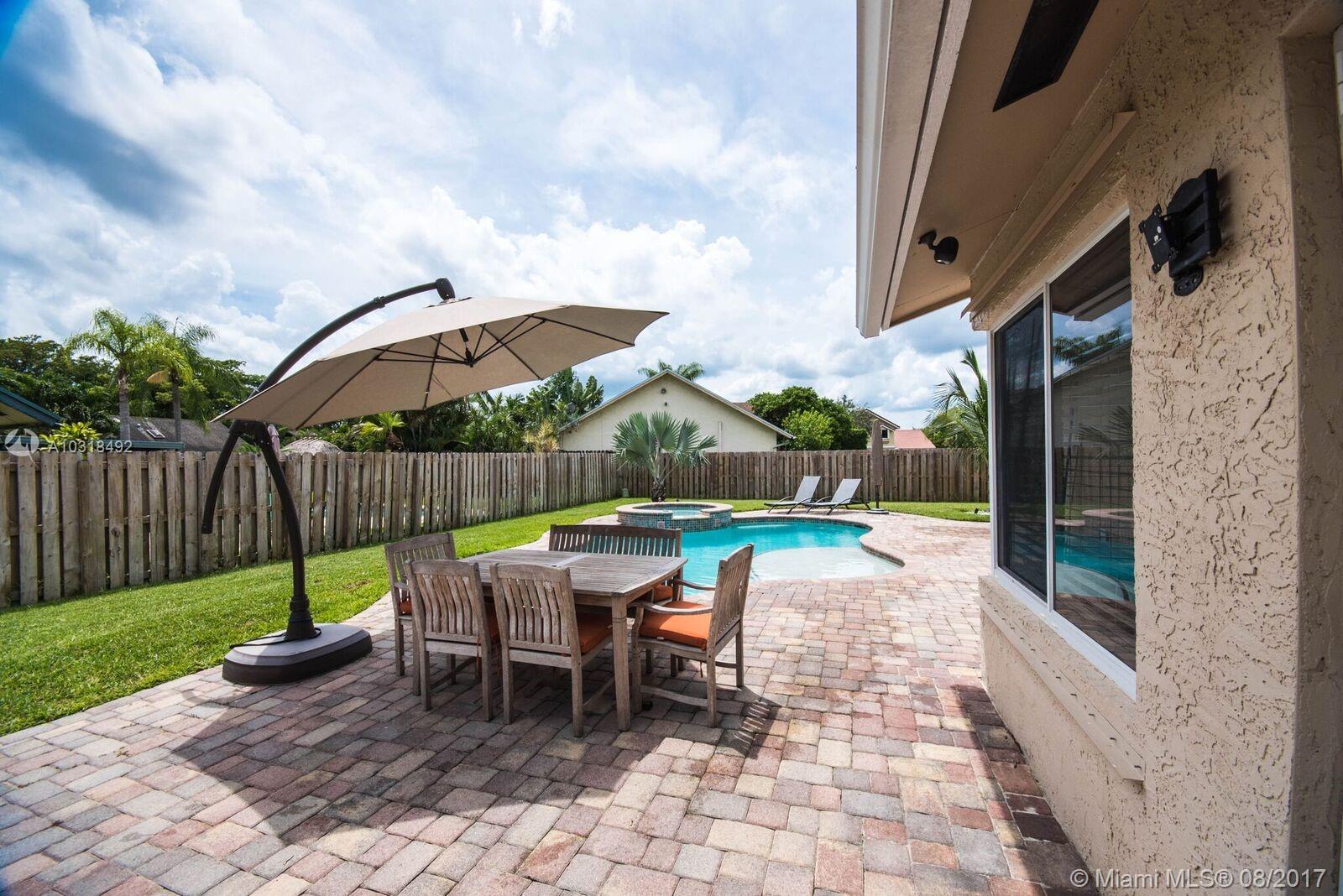 Updated home in sought after Jacaranda Lakes on lrg corner lot! Boasts pool/spa with large paved patio, solar water heater AND pool heater. Upgraded kitchen, w/granite counters & S.S. appliances, 2 updated bathrooms. Pergo floors. Alarm system & cameras front door & yard. Motion lights all around. Large laundry rm w/front load washer/dryer & lots of storage. A must see!