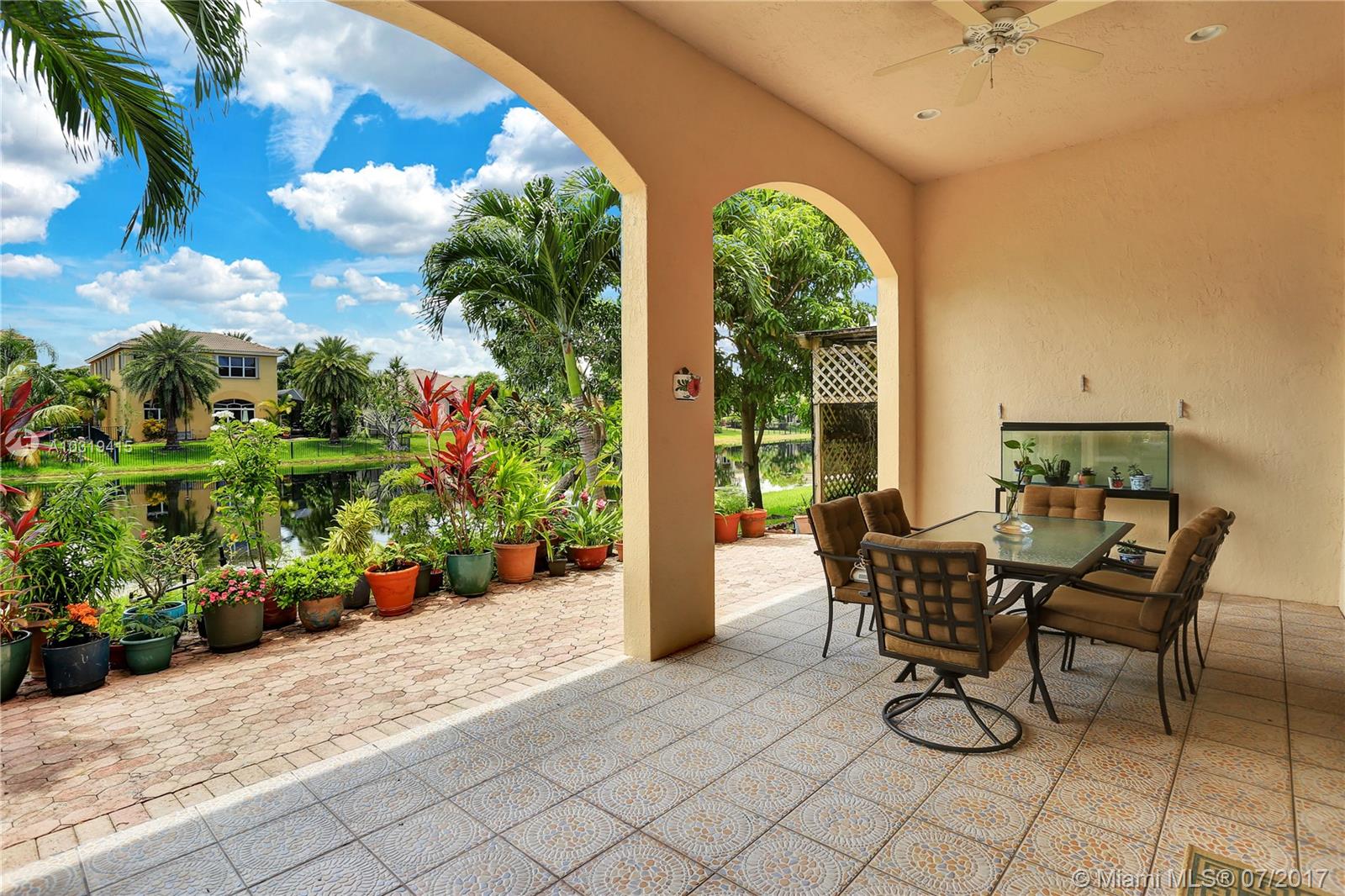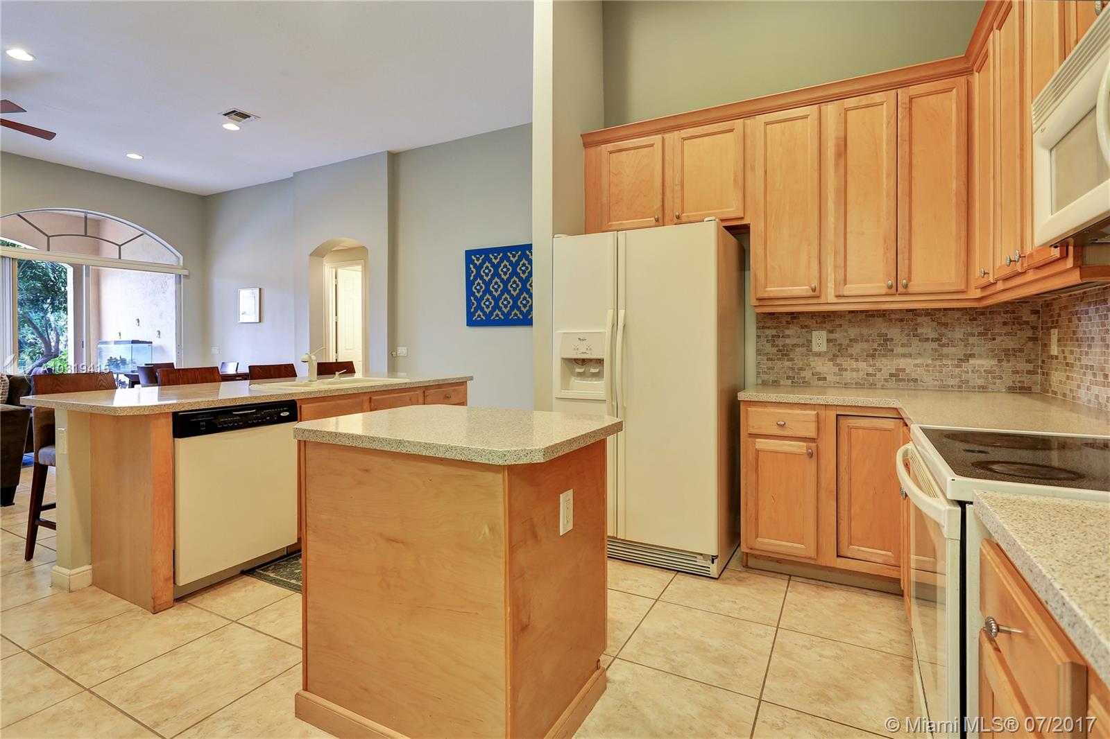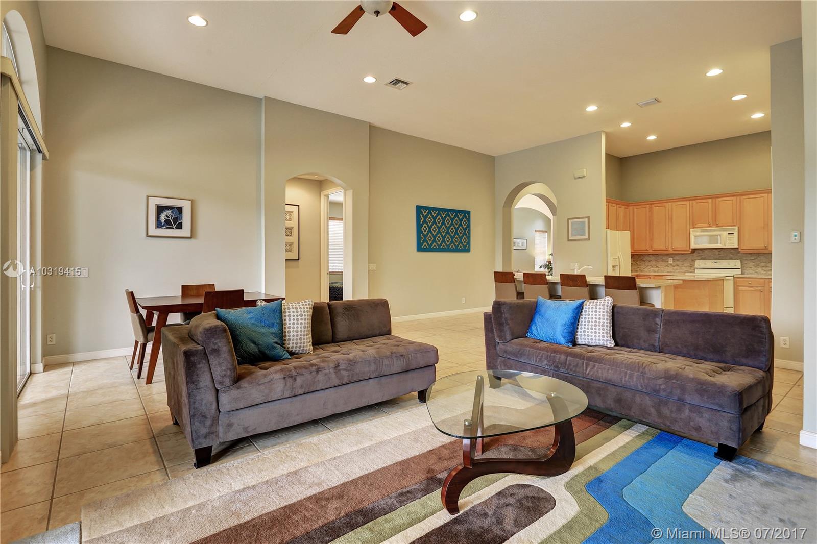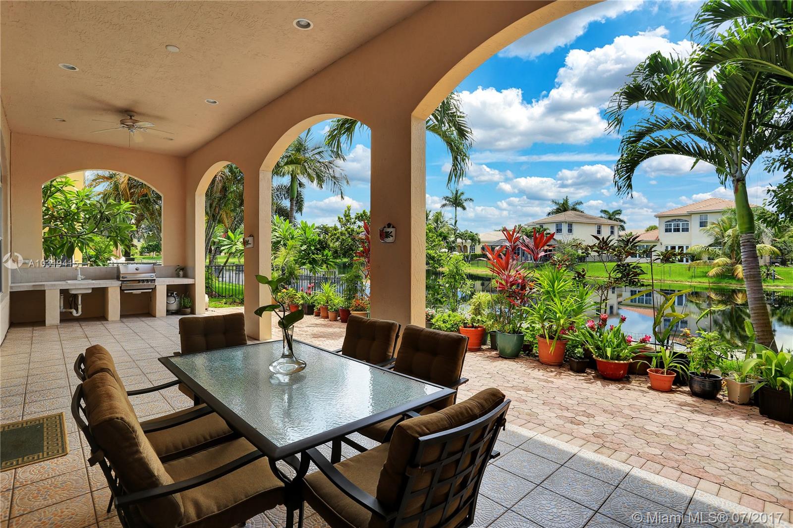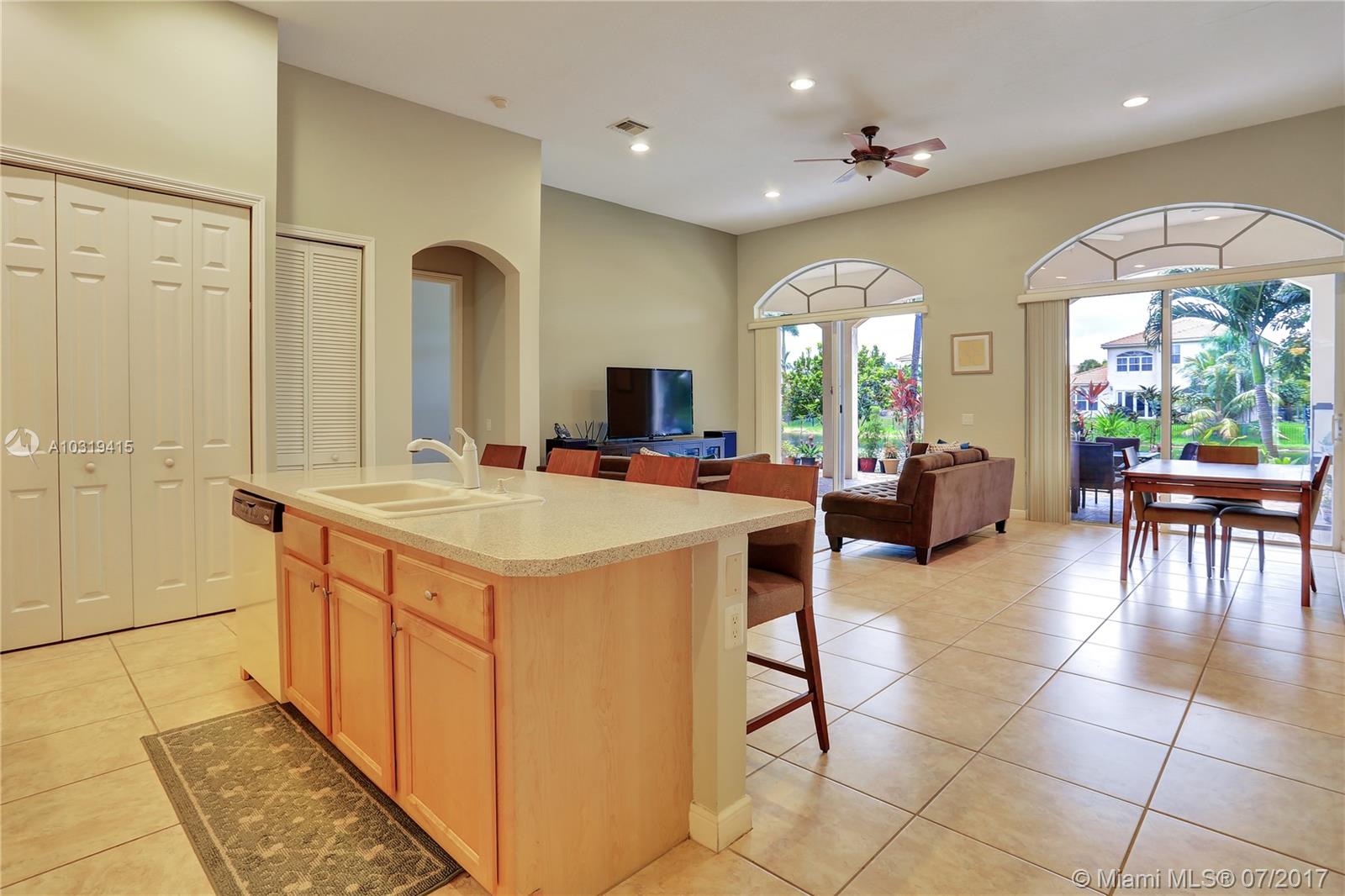 Welcome to this impeccable lakefront home! High ceilings throughout, Open and bright home featuring a split bedroom plan, tile throughout the living area, large living room & dining room, open kitchen with lots of countertops, island and cabinets galore. Large Family room and breakfast room overlooking a serene lake. Huge Master bedroom with high ceilings and 2 walk in closets. Tropical setting outside with a 400 sqft covered patio with arches and built in BBQ area. Florida living at its best!