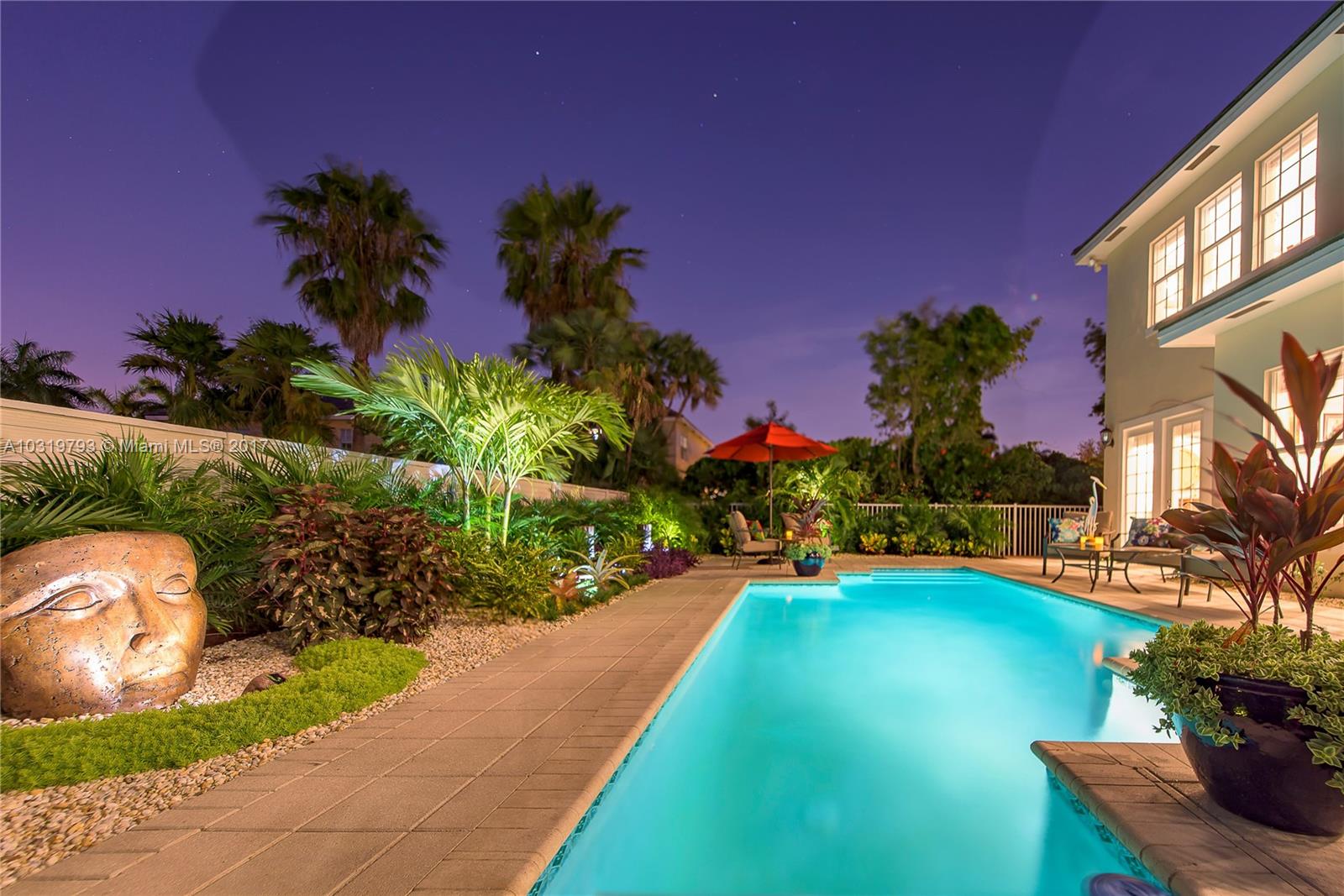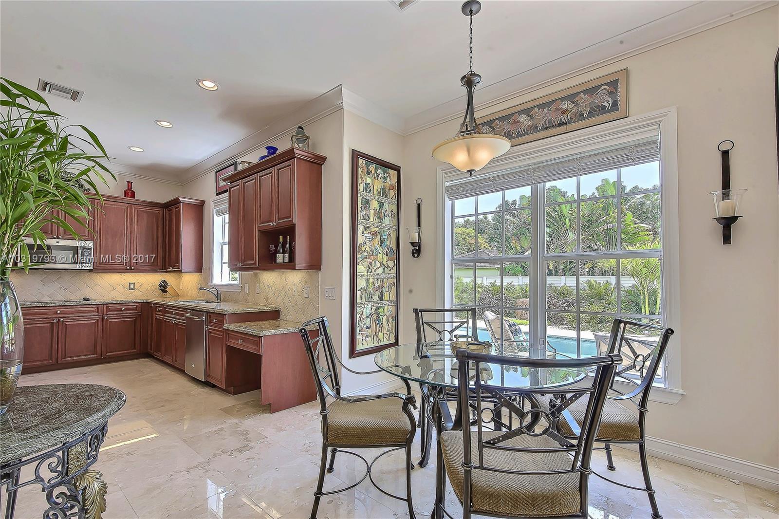 Home boast a bright open floor plan with 10 ft ceilings first floor and gleaming Marble Floors with crown moldings throughout. Formal Living Room and Dining Room, Chefs Kitchen,Family Room with Breakfast area. Four Bedrooms all with 9 ft Coffered Ceilings and Bamboo Floors. Huge Master Suite has Two Custom Built Walk in Closets that lead into the Master Bath, Roman Whirlpool Tub and Oversized Glass Enclosed Shower. A Full Size Laundry is down the hall. Hurricane Windows and Doors throughout. Expansive Private Outdoor Living is around a Large InGround Pool surrounded by Lush Tropical Landscaping. LaPreserve, a Premier Gaited Community is located East of I-95. Situated Minutes from Downtown, Las Olas Restaurants, Broward Center of Performing Arts, Museums, Airport and Beaches. A Must See!