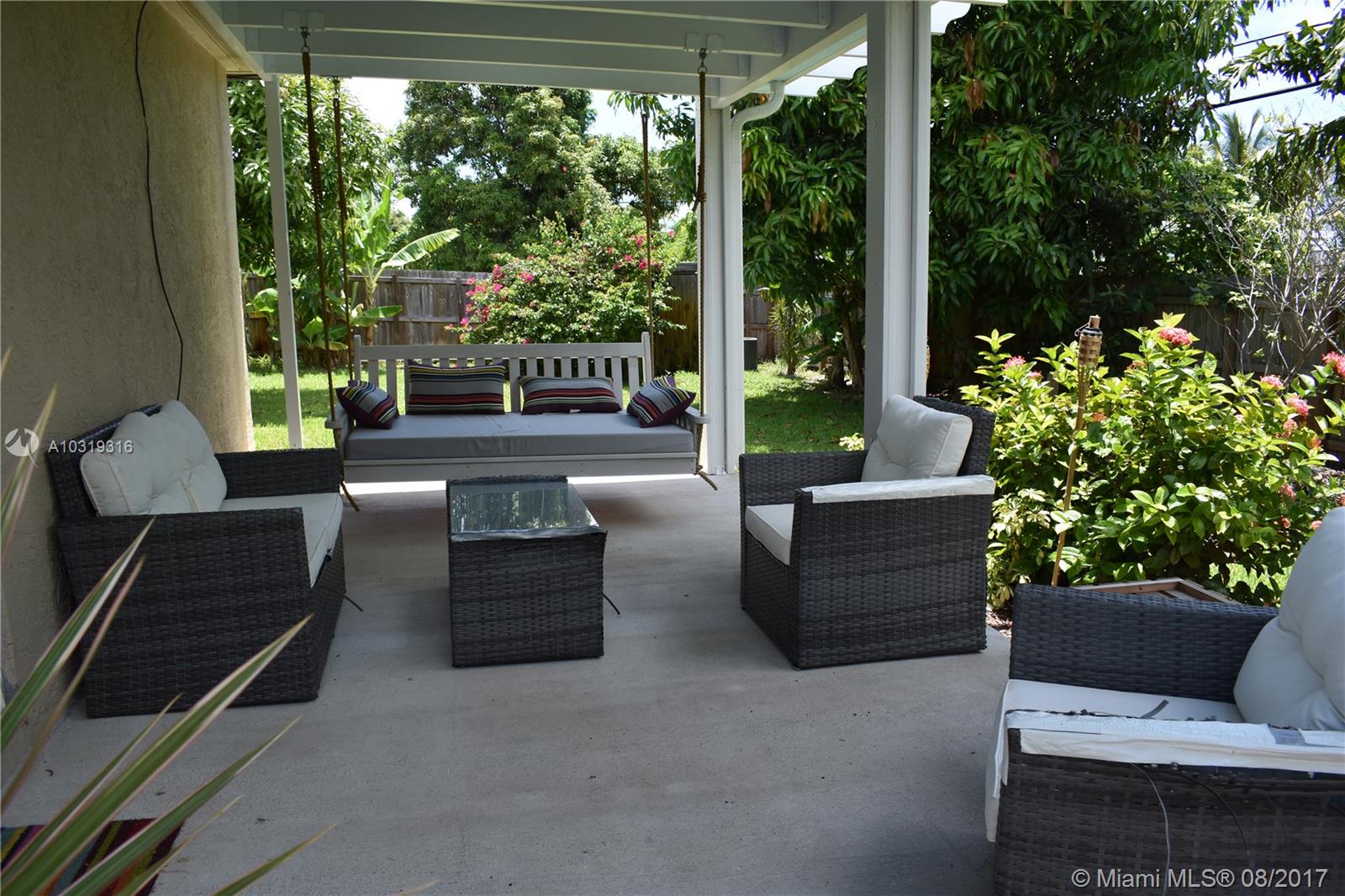 Nicely remodeled with high end designer features. New kitchen and appliances, updated bathrooms. Ceramic tile through-out. Spacious Living dining area open to kitchen. Butler Pantry and wet bar off the kitchen. 4 large bedrooms and 2 full baths. 2nd bedroom also has it's own private entrance. Large master suite with custom walk-in closet. Open and bright 10x10 laundry room with new large capacity washer and dryer. Large fenced in back yard with fruit trees and lush landscaping. New covered patio with swing. Sprinkler system on well with new rust filter. Close to US1, shopping, restaurants and beaches. Clear roof and termite report 8/17