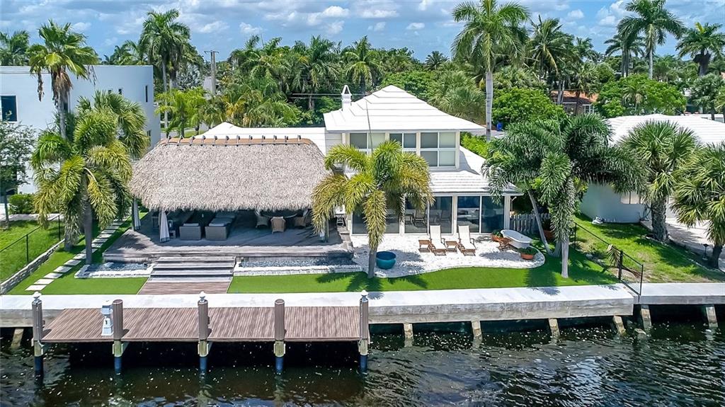 Exquisite Intracoastal custom built pool home with all the bells and whistles. You can't beat this harbor village location, which is walking distance to beach, shopping and restaurants. The main house has 4 beds, 2.5 baths with a private detached 1 bed/1 bath Guest/In-Law suite! Custom finishes include crema marfil floors ,limestone counter tops, S.S. appliances, remodeled bathrooms and a new dock! With 80' on the water, you can sit out back in your private Tiki Lounge and enjoy the panoramic views!
