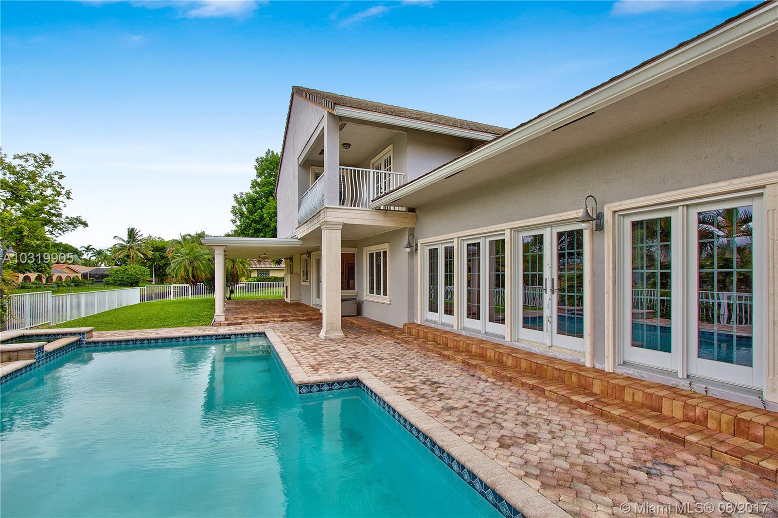 Beautiful 4 bedroom + loft, 3.5 bath Custom home with 2 car garage situated on large waterfront lot in the heart of Coral Springs. Home has lots of natural light! Circular driveway offers plenty of parking. Enter through front double door into living area that boosts wood beams, wood flooring, fireplace, shaker style walls & crown molding, Volume ceilings. Updated open kitchen with wood cabinets, top notch SS appliances, Extra large French doors leading to beautiful fenced outdoor pool/ Spa/ patio area perfect for entertaining. Picture window over sink, island has flat top stove with designer pan rack above. Beautiful HUGE master Suite downstairs overlooks pool with Roman tub and 2 showers . Plantation shutters, indoor laundry room with front loading washer/ dryer. No HOA. Must See!
