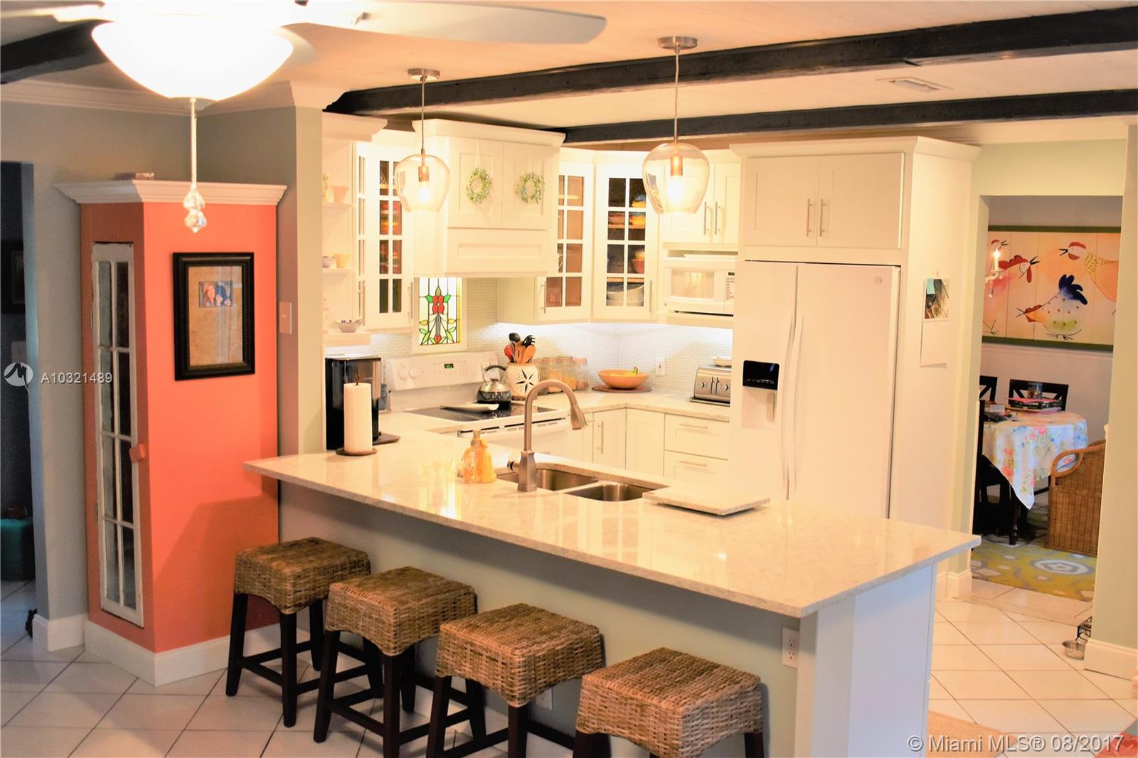 Welcome Home! Enjoy this beautiful Ramblewood property! Prof. landscape, new irrigation & pool pumps. Step inside where the stylish ceiling beams will catch your eye. No popcorn! The new kitchen boasts shaker soft-close cabinets & quartz counters, brand appliances, glass back-splash and crown molding. A lifetime warranty on hurricane door & windows w/low ins. premiums. 6 hurricane sliders on the back of the home lead to pool & screened patio. On-suite master bath w/double marble vanity and cabana door. The 2nd bedrm is like a spa oasis w/trims and soft shades of neutral tones. 3rd bedrm has a cottage feel with a wood accent wall. A/C unit routinely maintained every 6 mo. (May '17) Roof washed May '17. Lg. fenced lot. Sunsets, pleasant neighborhood, & schools are all satisfied. No HOA!