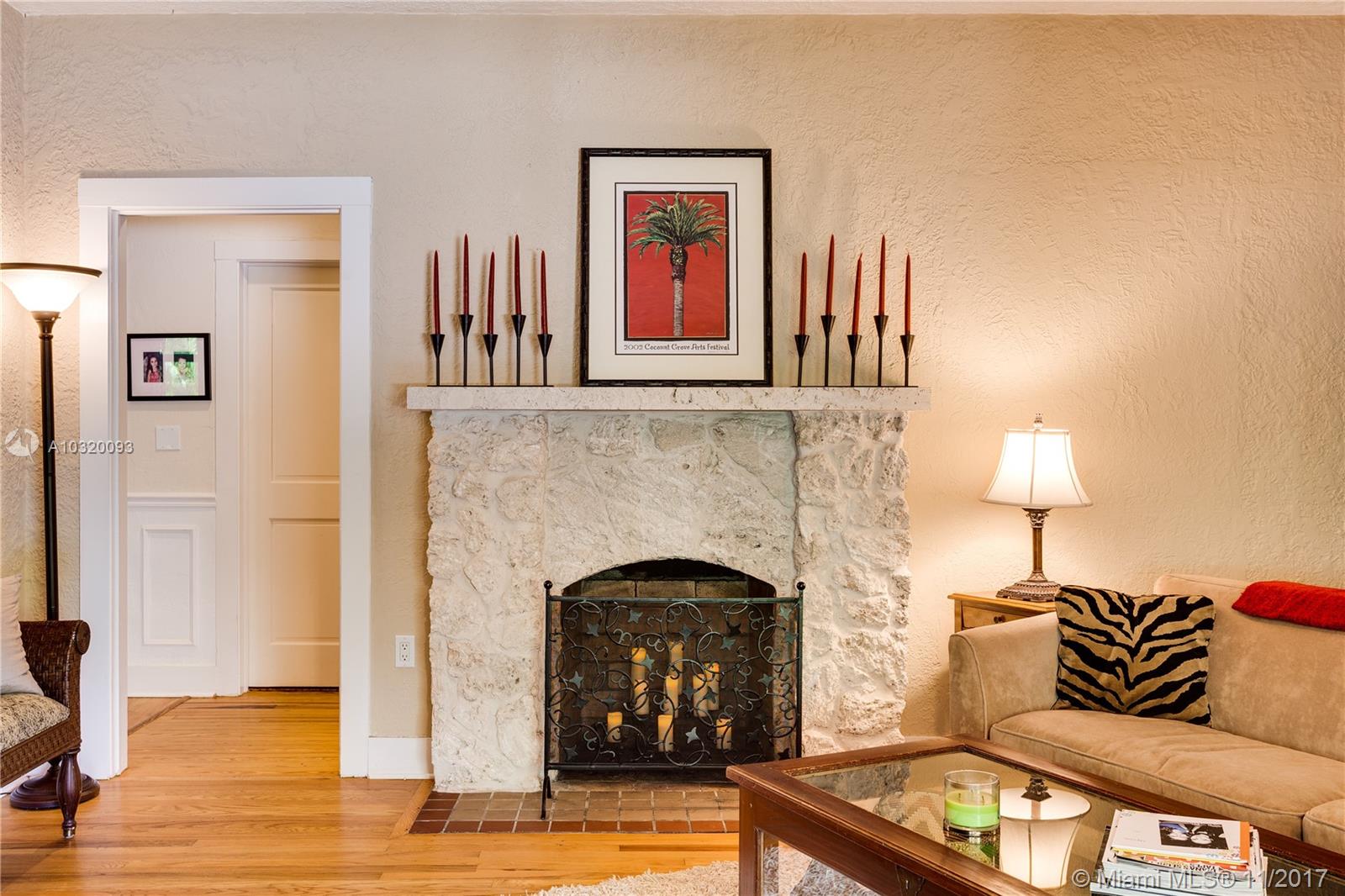 Live in Miami's most desired neighborhood of North Coconut Grove. Old Spanish 4 bedroom/3 bathroom home with separate 1/1 guest house on quiet street. Spacious master suite with large walk in closet and updated bathroom. Entry foyer brings lots of natural light into the home, wood floors throughout, working fireplace, and many architectural details in this well maintained property surrounded by lush foliage
