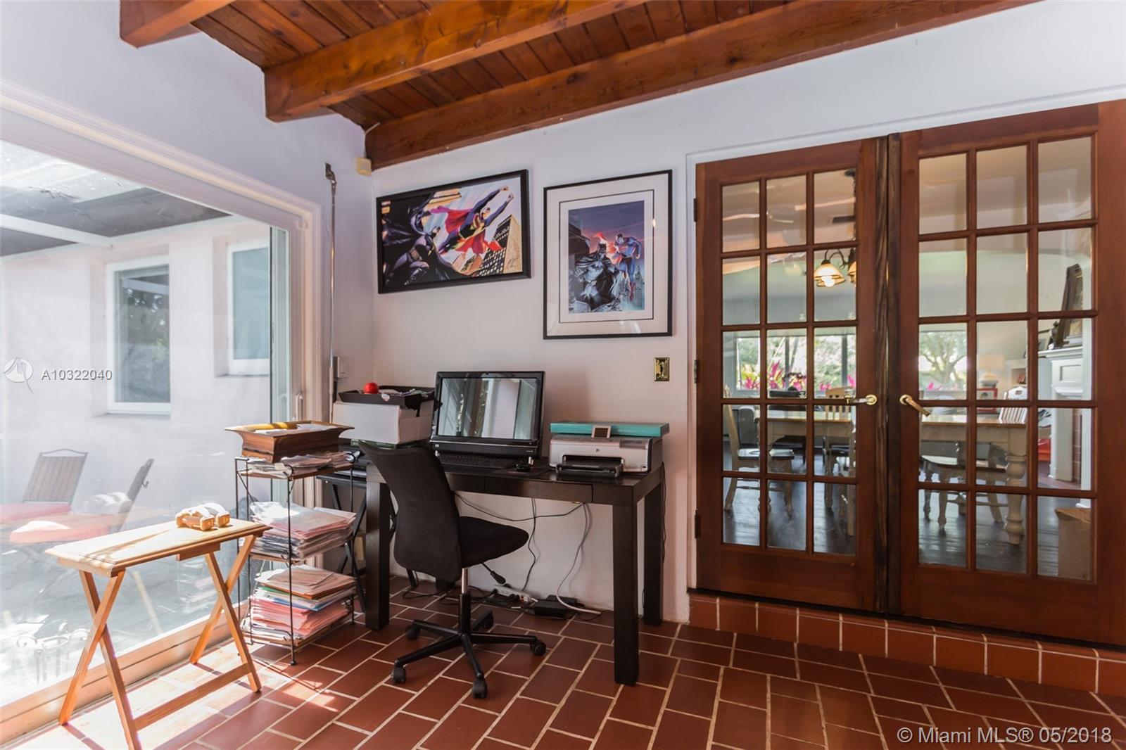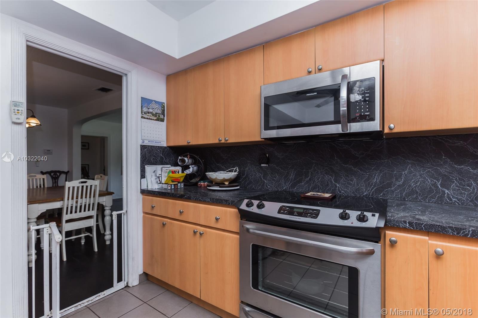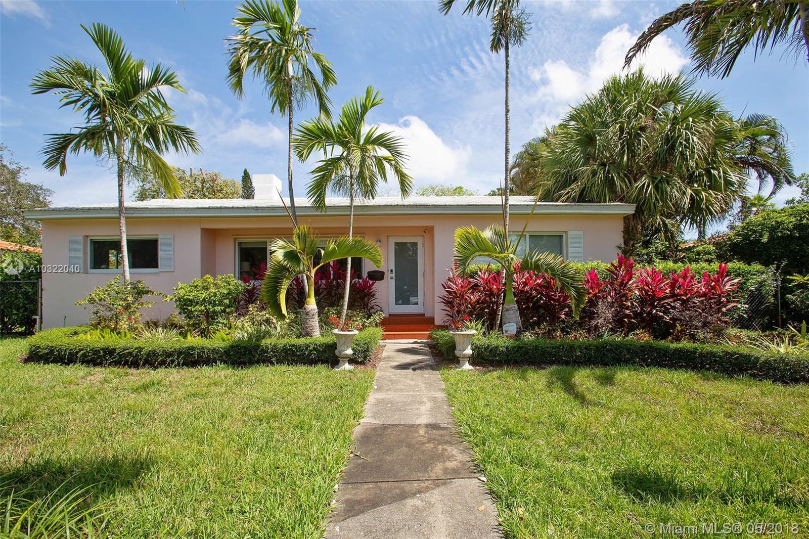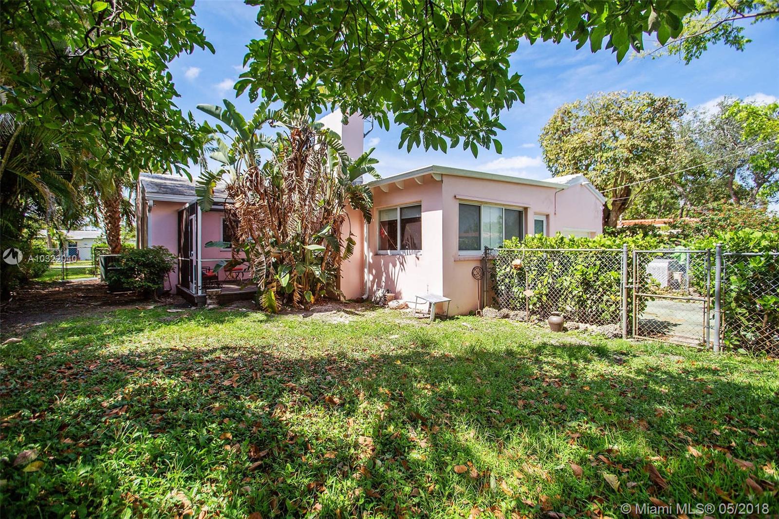 Large 3/2 family home on quiet low traffic Miami Shores street. Many recent upgrades including impact windows & dual zone central air/heat. Updated eat-in kitchen. Refinished hardwood floors. Huge family room with tile floors & fireplace. Split bedroom plan. Garage with washer & dryer. Whole house generator. Newer tile roof. Private fenced yard with screened porch. Alley access to garage & paved parking accessed by remote controlled rolling gate. Close to Barry U. Value priced for quick sale.