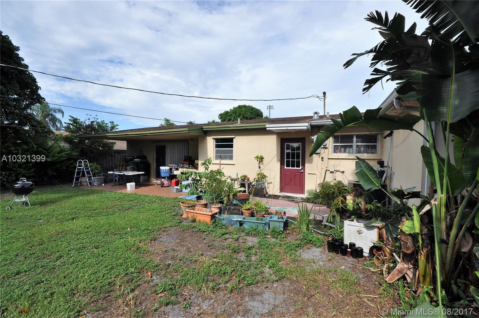 Very nice 3/1/1 in Hollywood, large backyard. Kitchen updated with nice cabinets, master bedroom with 1/2 bath. Gas Stove and Water Heater, near Turnpike and Hollywood Blvd easy access to major roads. Large yard with room for expansion and/or pool, perfect for entertaining and family gatherings with a covered patio. Nice circular driveway.