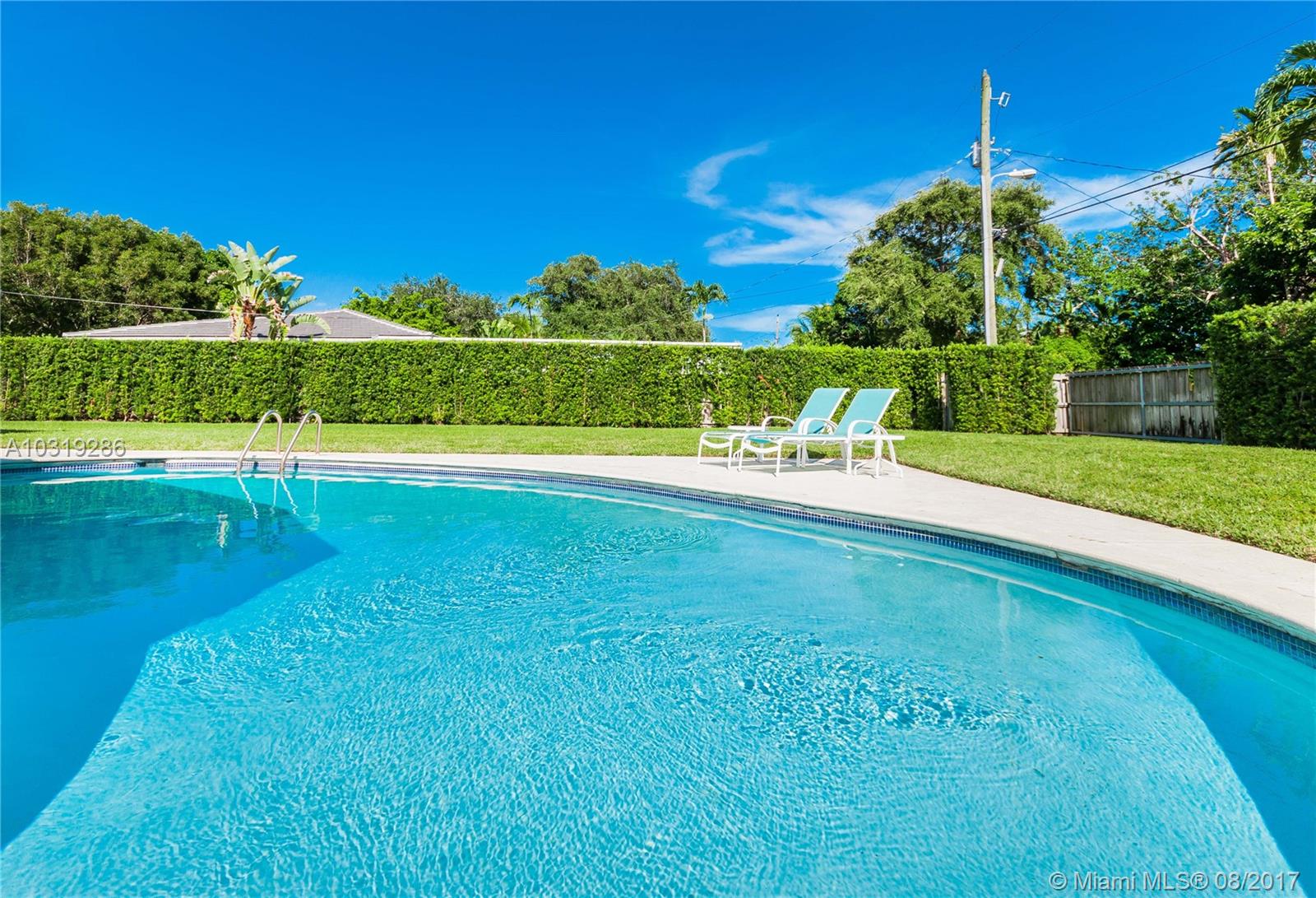 Mid-century, pool home on 13,000 SF corner lot in spotless condition with 2,281 Sq.Ft. of Living Space as per appraisal. This 3 bedroom / 3 bathroom home is move-in ready with split bedroom plan, laundry room, gas stove and open floor plan perfect for modern living. Enjoy Great Room that opens up to pool and large, fenced-in yard. Features include spacious rooms, lots of natural light, water filtration system, bonus room perfect for small office or nursery, built-in bookcase, hurricane shutters, large circular driveway, and more. Located steps from downtown Miami Shores.
