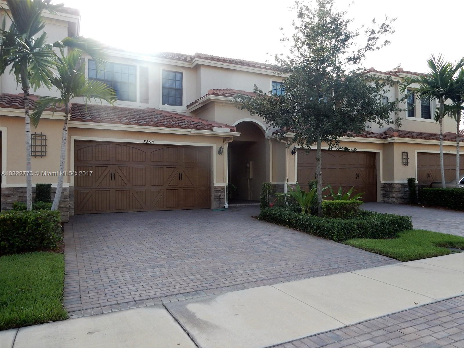 This spacious immaculate upgraded 3 bedroom 2 1/2 bath townhome complete with impact glass is PRICED FOR QUICK SALE! Upgraded tile on first floor with beautiful dark walnut cabinetry, granite counters & stainless appliances in kitchen. Flexible floor plan & great storage with full 2 car garage. Upstairs features spacious secondary bedrooms & large master suite with sitting area , walk in closet & master bath with oversized shower & separate roman tub. Situated on one of the best interior lots you will find a Screened patio overlooking green space. Enjoy living in this great community with pool across from parks, schools & close to shopping with great highway access. Low maintenance of only $165 per month makes this one of Parkland Best values in highest rated school district.