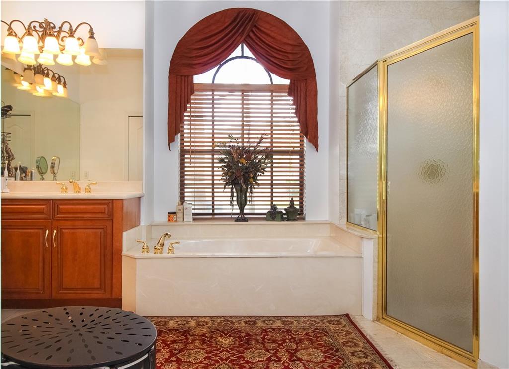 • Característica Interior:BedroomonMainLevel, BreakfastArea, DiningArea, SeparateFormalDiningRoom, EntranceFoyer, EatinKitchen, FrenchDoorsAtriumDoors, GardenTubRomanTub, MainLevelMaster, Pantry, SittingAreainMaster, Bar, WalkInClosets, Attic