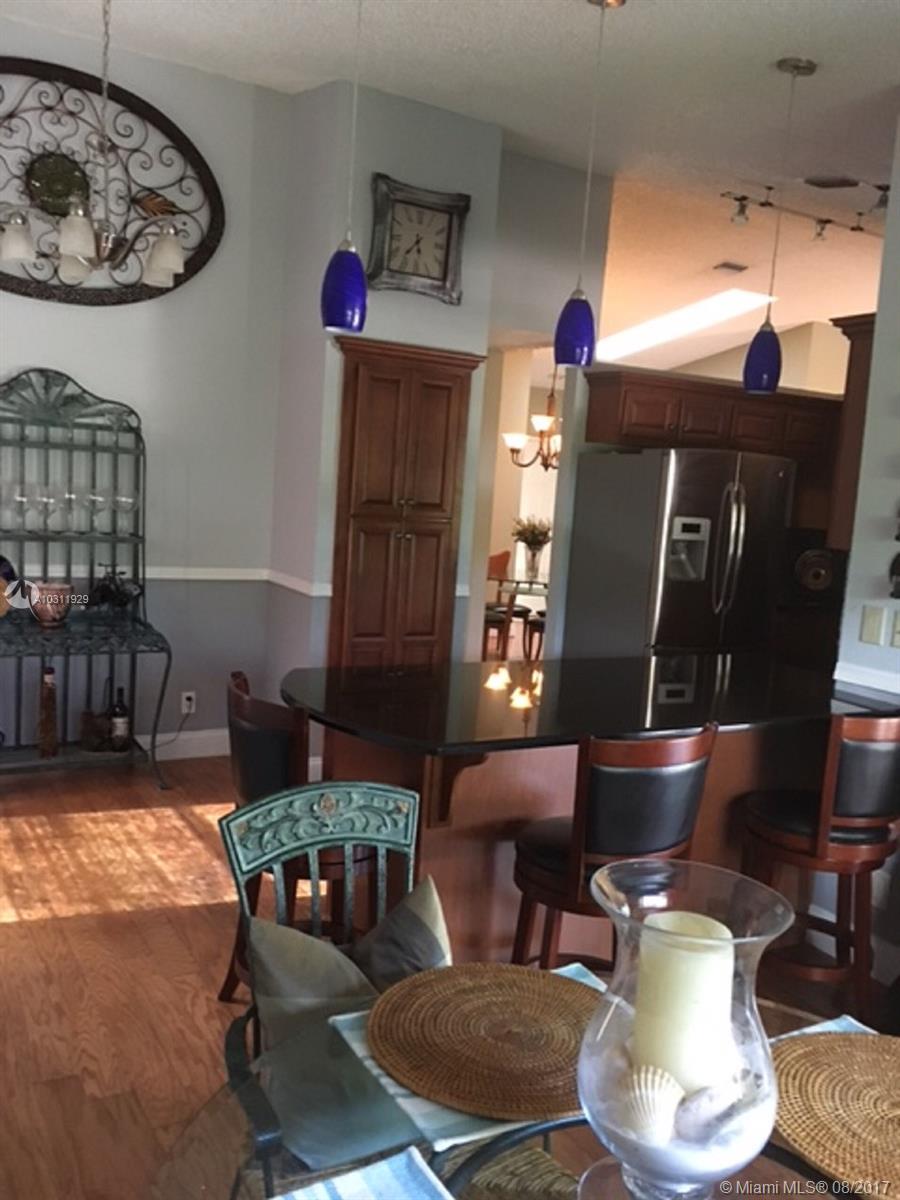 Lovely home on canal! As you enter, you are immediately drawn to the lovely lush tropical landscape seen from the sliding glass doors in the living room, kitchen and master bedroom. The living room and formal dining has wood floors and updated baseboards with an open pass thru from the amazing new kitchen. New wood cabinets, and black granite countertops with an extended counter to sit and enjoy your meals or entertain your guests. Beautiful backsplash, stainless steel appliances with tile & wood floors. Kitchen has two areas for a dining table and/or sitting area with sliders that open to the screened enclosed lanai and private tropical patio. Wood floors in master and carpet in 2nd and 3rd Bedrooms. Accordian Hurricane Shutters.