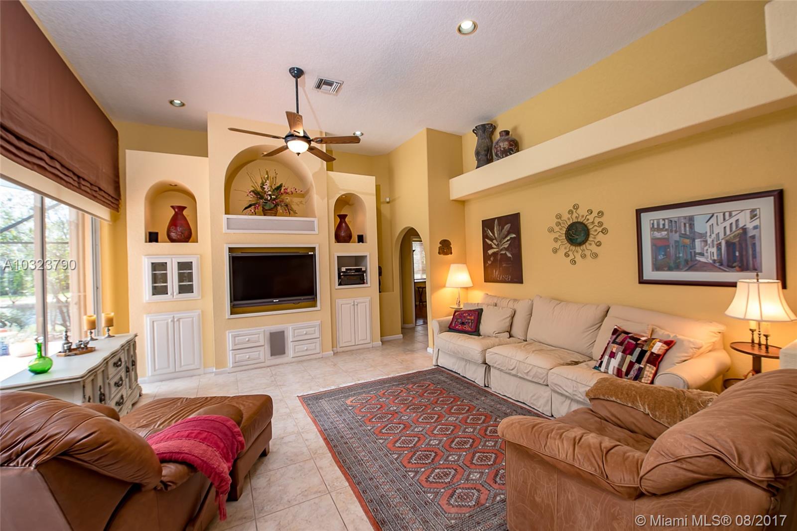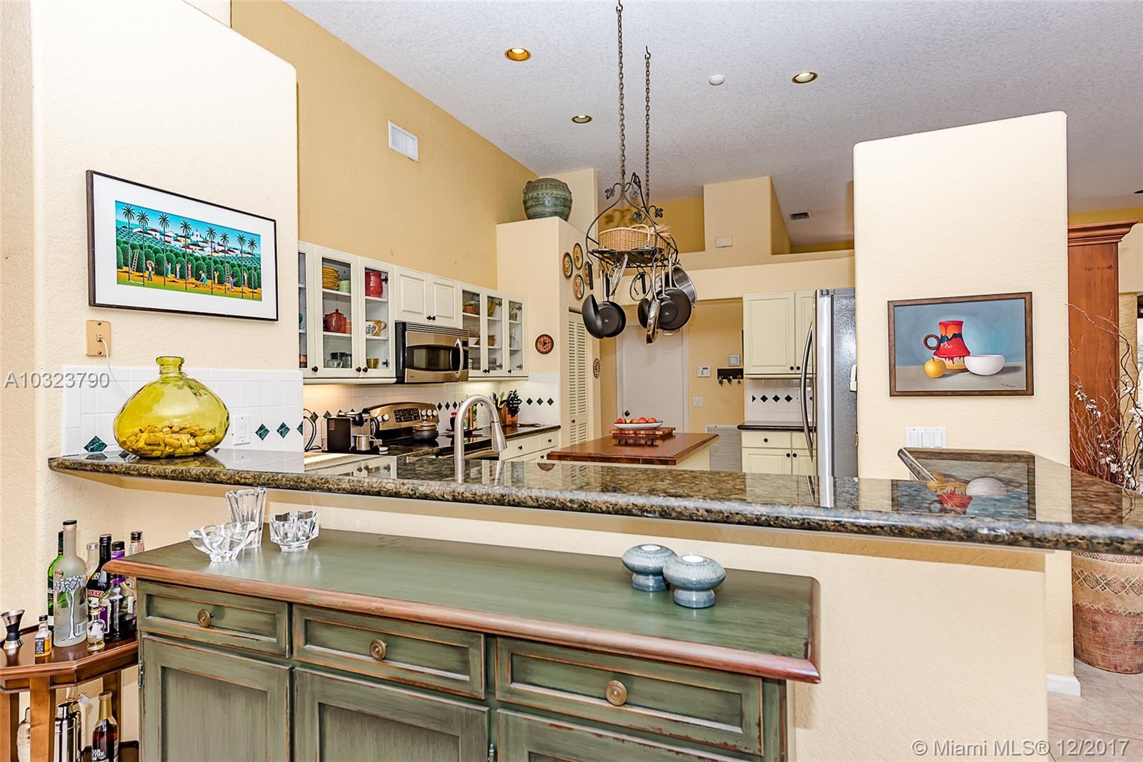 PRICE TO SELL ! Mediterranean flair tucked on a private lake front lot in Jasmine Island. One story home featuring 5 bedrooms and 4 full baths. Custom screened solar heated pool with raised spa and custom design pool deck. Open floor plan, volume ceilings tile in living areas and hardwood floors in bedrooms.Kitchen boasts wood and glass cabinetry, center island ,granite counter tops . SS Appliances. Living room , breakfast area ,family room all with relaxing pool and lake view.Accordion shutters