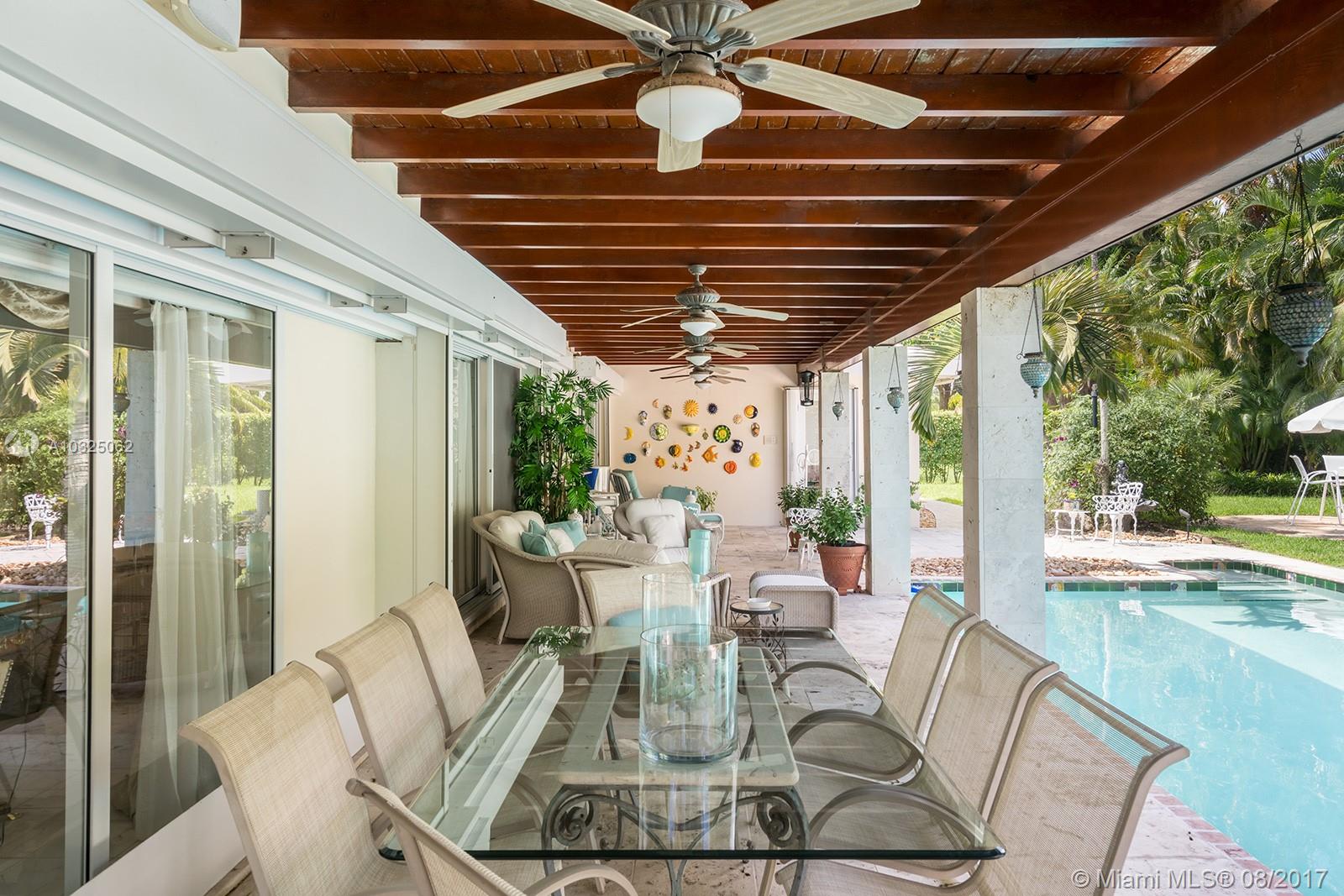 Pure Elegance in the Exclusive Village of Pinecrest. A Peaceful Courtyard leads you to a Double Front Door Entry into a 4BR/3.5BA Pool Home. This home has a Split Floor Plan w/a Master Suite w/Jacuzzi Tub on one side of the home, & 3 Bedrooms, an Office, Den/Nannies Room, & Playroom on the other. A Spacious Layout that includes a Lovely Kitchen Overlooking the Tranquil Pool & Patio Area. A Formal Living Rm, Formal Dining Rm, & Family Rm all which have Views or Access to Sliding Glass Doors that open to a Beautiful Covered Patio/Pool Area & Private Back Yard. This Home has many Special Features. California Closets Throughout, Full House Electric Generator w/Two 320 Gallon Propane Tanks, Heated Pool, Electric Accordion Shutters, Covered Car Port, Hardwood & Marble Flrs, All Palmetto Schools.