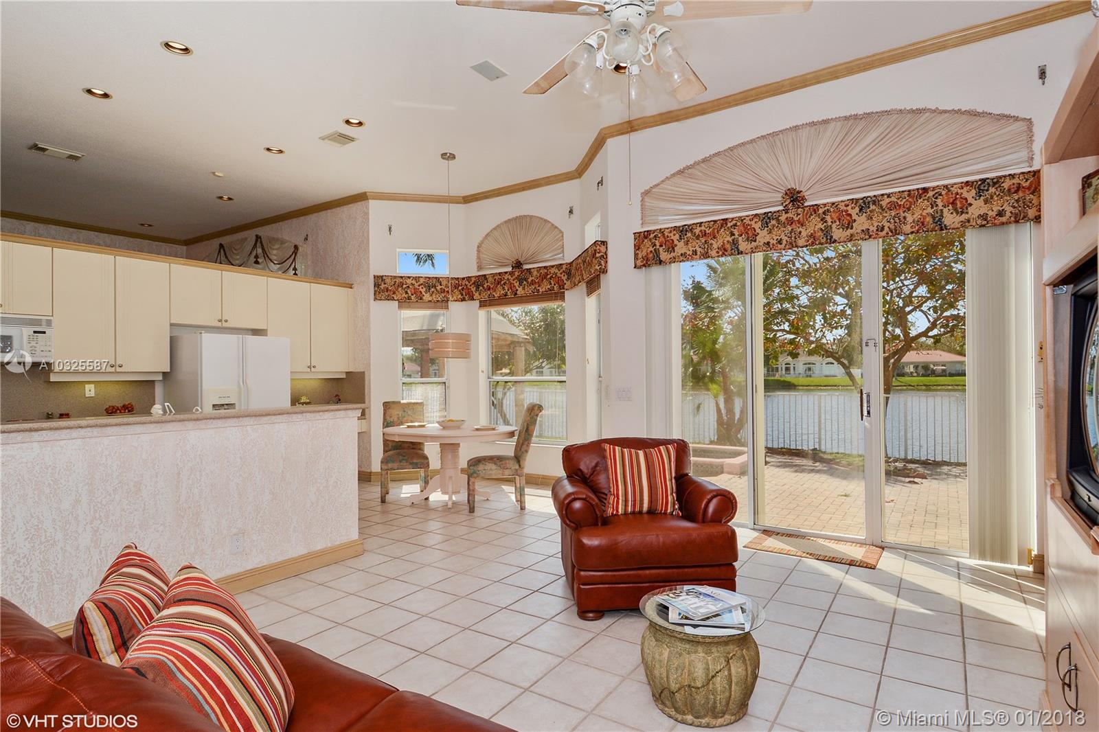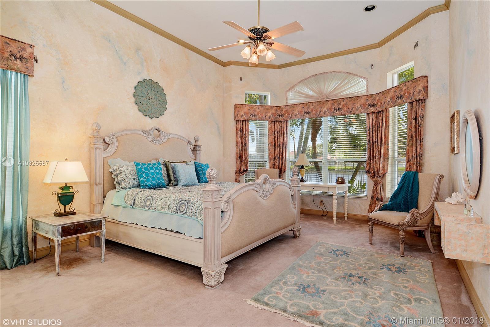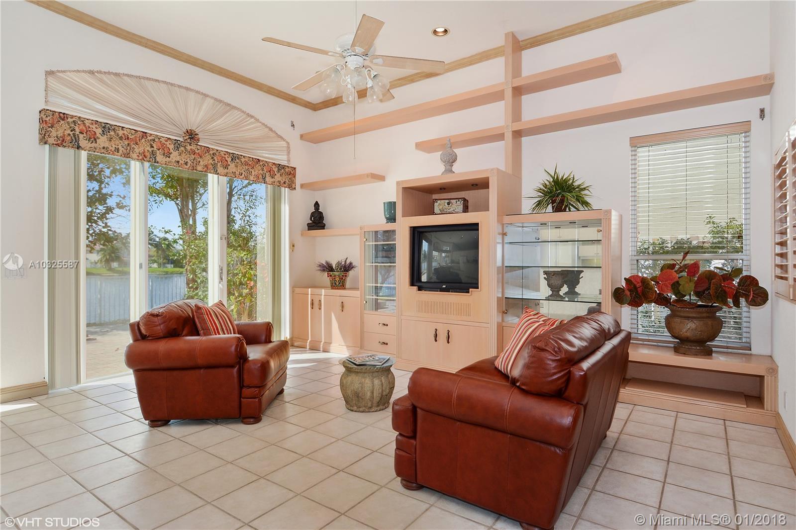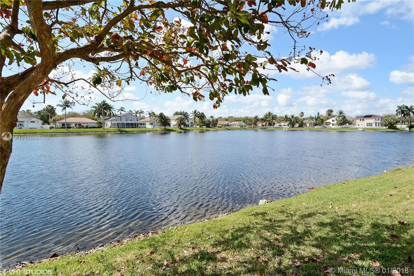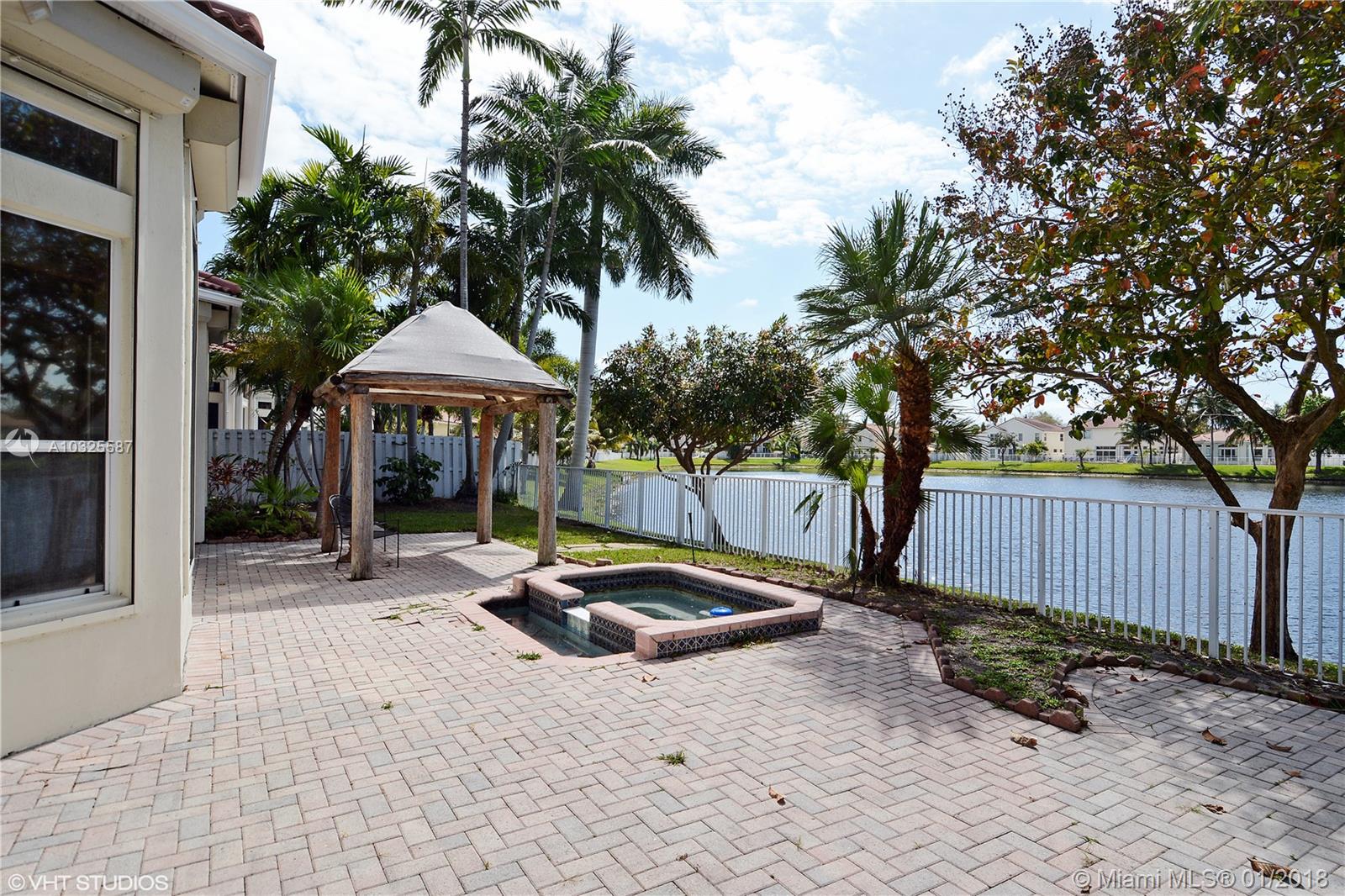 MOVE-IN READY: Beautiful lakefront model home w/many upgrades & custom built-ins in gated community w/easy assess to all of South Florida. Hurricane safety with Rolladen (electric) shutters on all windows & doors. (This home never lost power during Irma.) Open floor plan w/soaring ceilings & dramatic finishes. Tropical backyard has tiki hut & in-ground spa and opens to wide lakes views. CYPRESS Model 4BR, 2.5BA is largest 1-story home + best value in sought after Oakridge community. Prime water-views from great rm, master BR, living rm. Close to Houses of Worship.