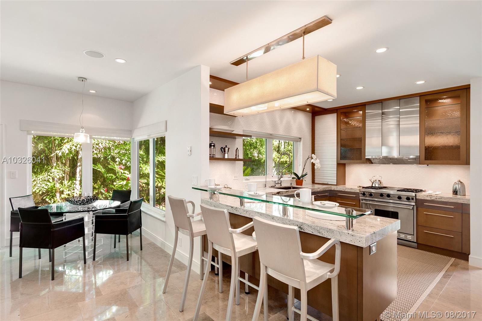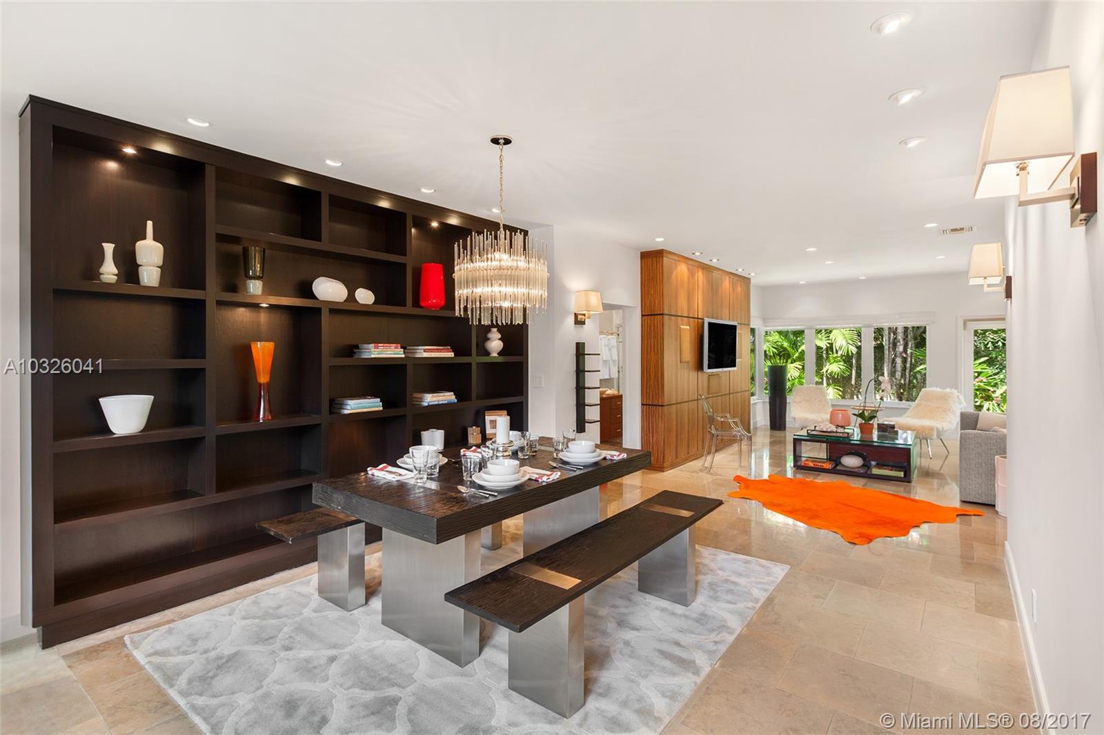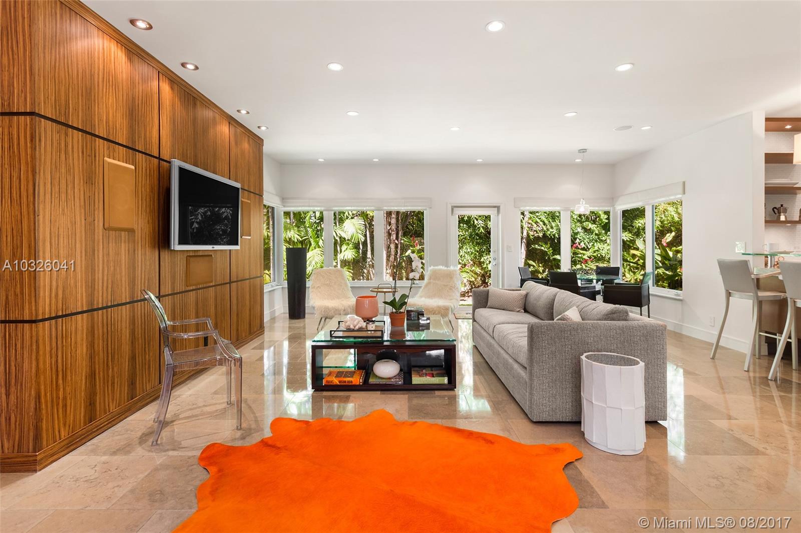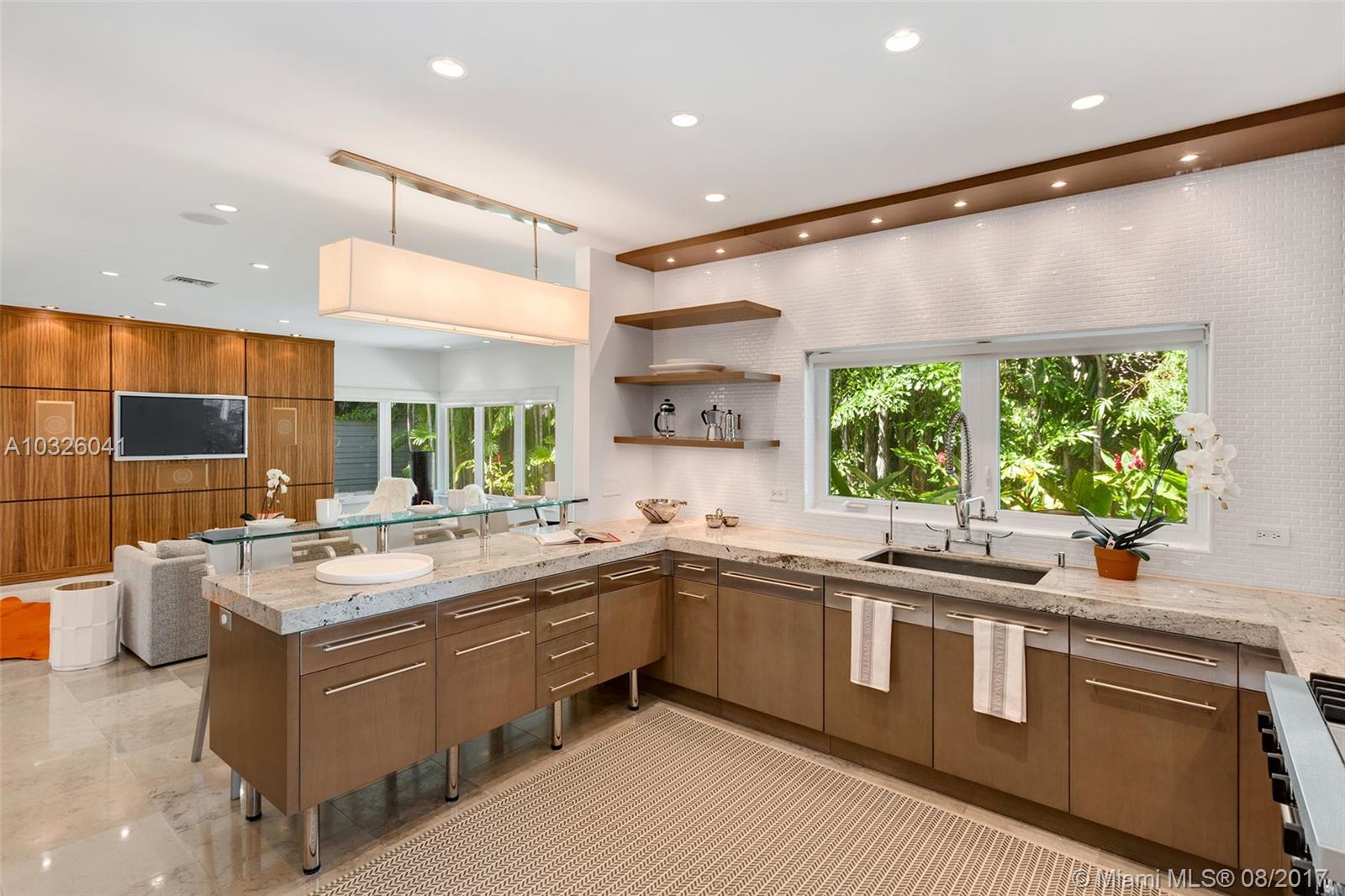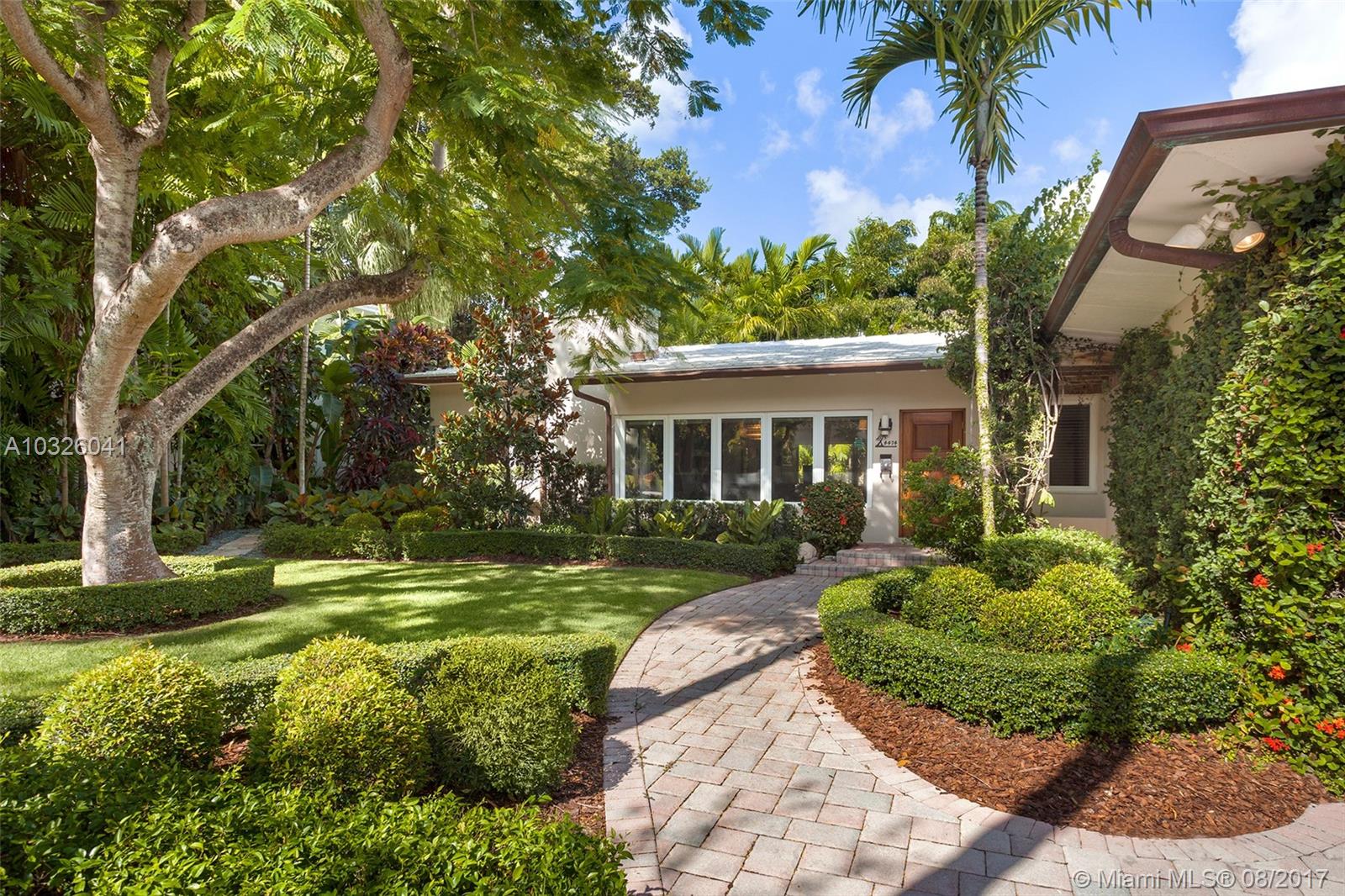 No expense spared in the design of this impeccably renovated contemporary home! Located on a quiet, tree lined street, this 3 BD/2BA home is the perfect combination of mid-century modern sophistication & casual elegance. This turn-key home was made for entertaining with an open kitchen, living, & dining area illuminated by natural light pouring in from oversized hurricane impact windows/doors. Custom chef’s kitchen boasts granite countertops & breakfast island, exquisite backsplash, custom cabinetry, & top of the line SS VIKING appliances, including a 4-burner gas stove. Relax & take in the views of your lushly landscaped & meticulously manicured garden & yard throughout this artfully designed home. Additional features include a built in audio system, custom wood built-ins, & 1 car garage.