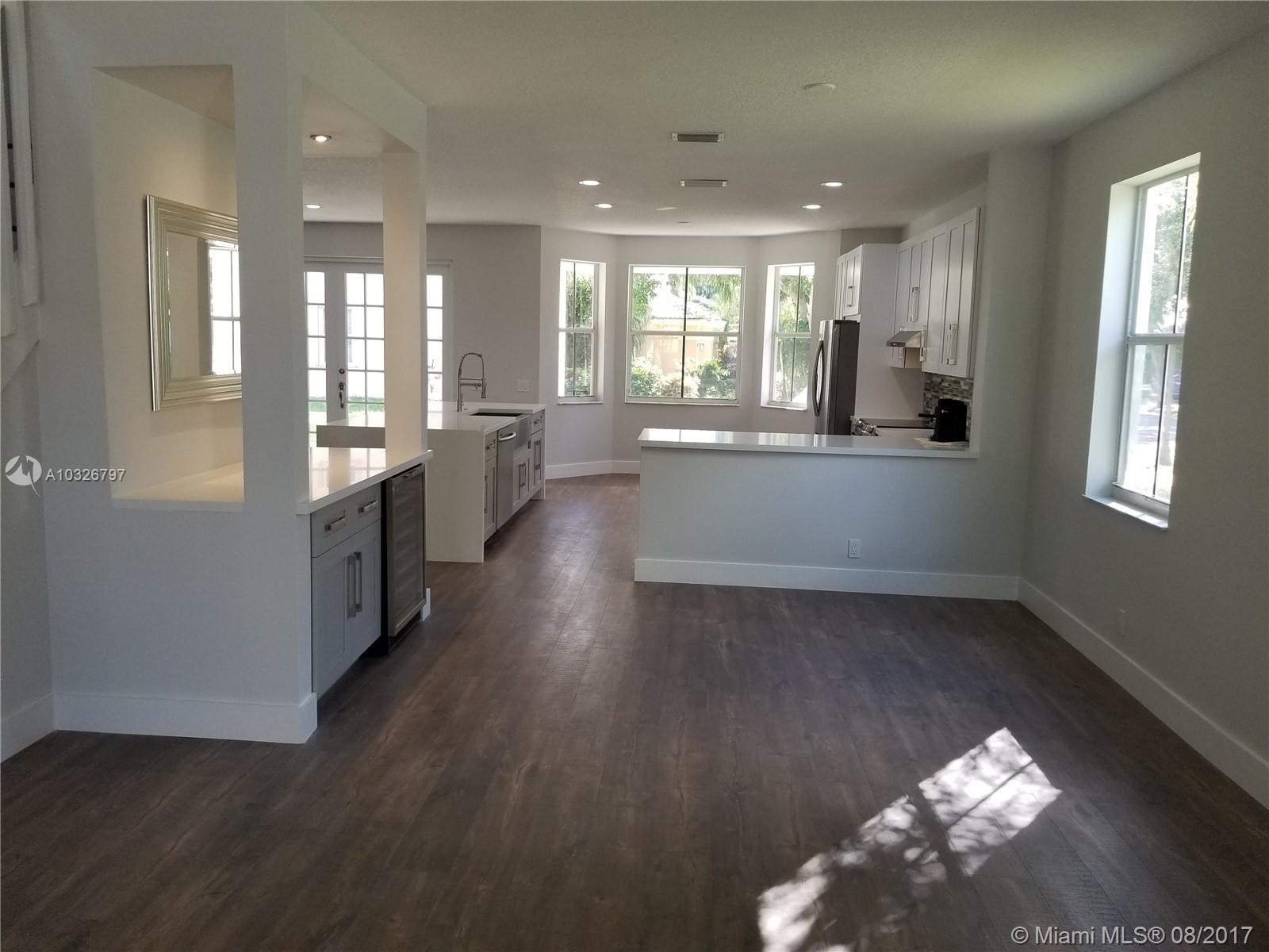 Renovated 5/4 with an open floor plan in one of Weston's most desirable communities. Kitchen is amazing and features a large eat-in island and farmhouse sink covered with a stunning quartz and new appliances. Kitchen is open to formal dining and living area that has a coffee/wine bar. Stunning open concept master bath is a wet room with a free standing tub and rainfall shower. You will really enjoy this home. Property is situated on a large corner lot with room for a pool. Excellent amenities with a clubhouse, gym and community pool. A + school zone from Elementary to High School.