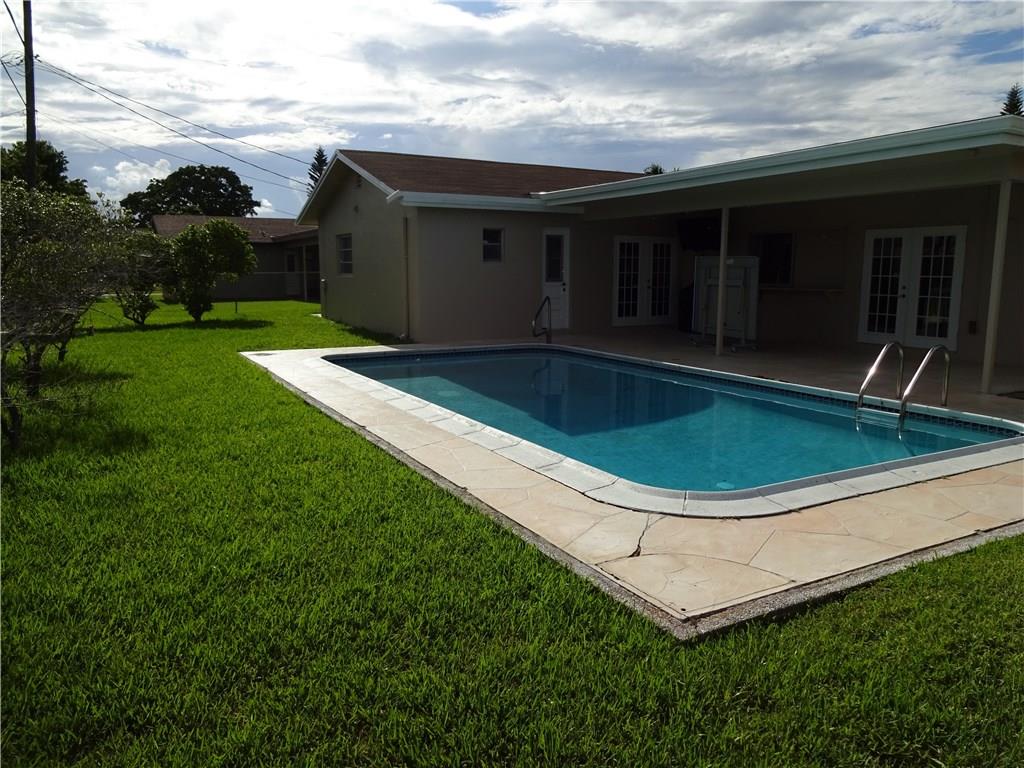 Pristine home has it all***Laminate floors throughout the living areas & tile in bedrooms***Modern updated kitchen with stainless steel appliances & granite counters***Both bathrooms are updated + both are cabanas***Interior AND exterior recently painted***French doors in dining & family rooms open to fenced pool with roofed patio***Split bedrooms***6 panel doors + modern light fixtures***AC replaced in 2015***SHUTTERS***Located in the heart of west Sunrise & close to everything***NO HOA.
