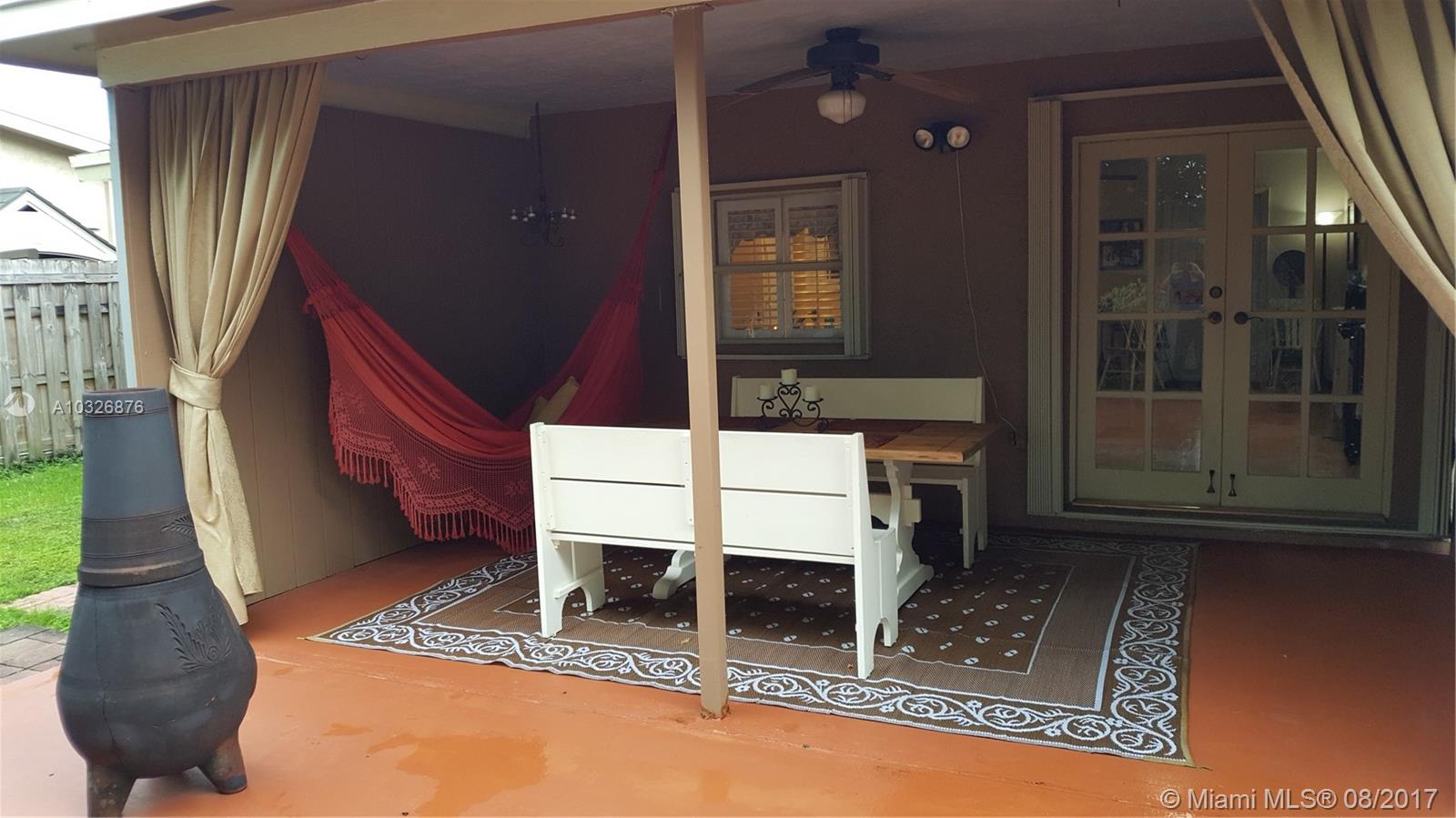 Safe and secure, very well maintained, 960 sq ft, 2 bedroom 1 bath house. Located on a quiet double cul-de-sac, family friendly neighborhood. Large permitted concrete deck behind home ready for huge expansion of living space. Hurricane ready in minutes with retractable shutters. Home passes wind mitigations qualifications. Extra storage with new 16 x 12 shed with roll-up garage door, impact windows certified to 190mph. Facilities for RV with water sewer and 30A electrical hookups. Modernized kitchen with new cabinets, granite countertops. Always ready for power outage with natural gas range and water heater. Beautiful wood-like ceramic tile floors throughout the house. Pet ready fenced back yard. A rare find in beautiful central broward county.