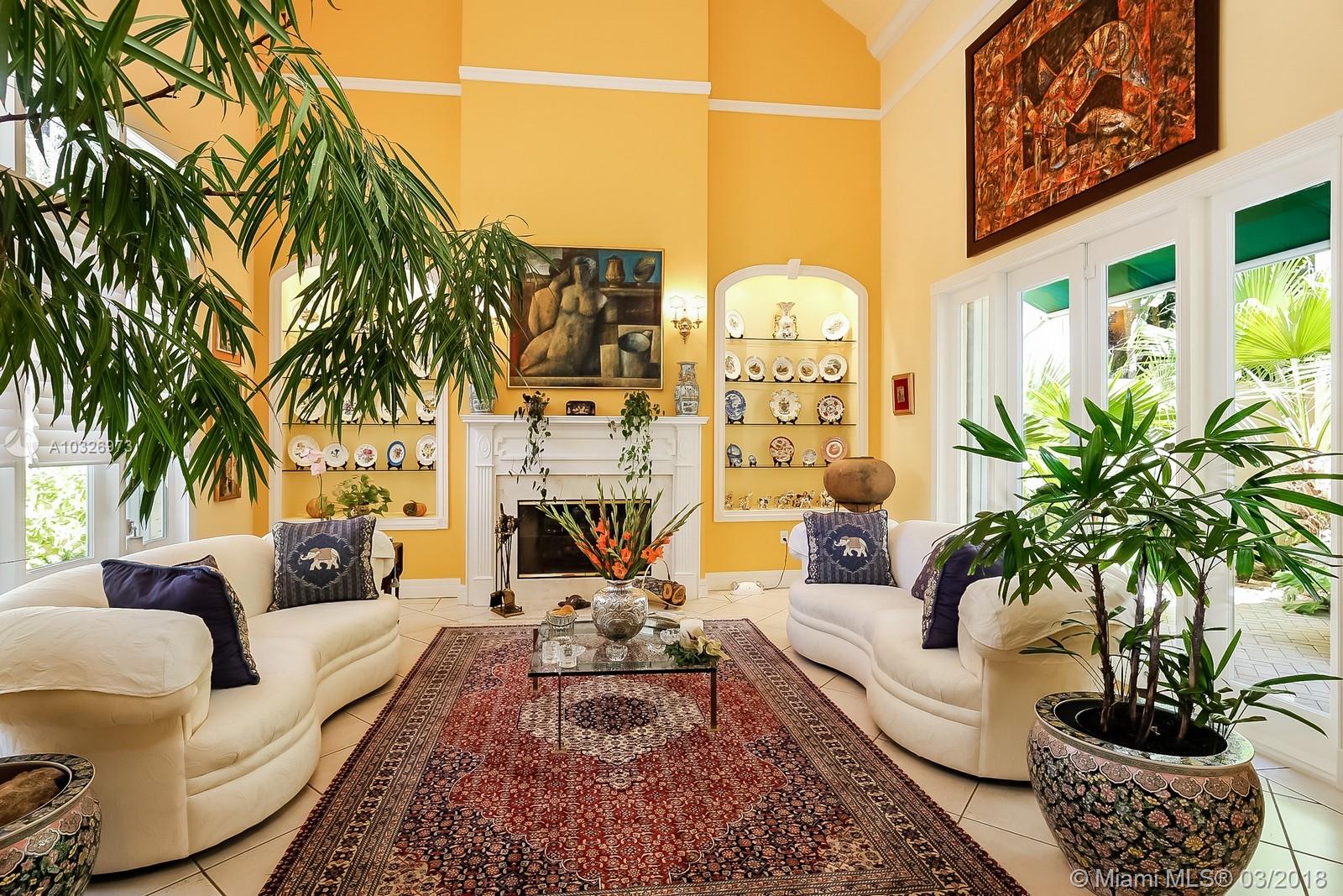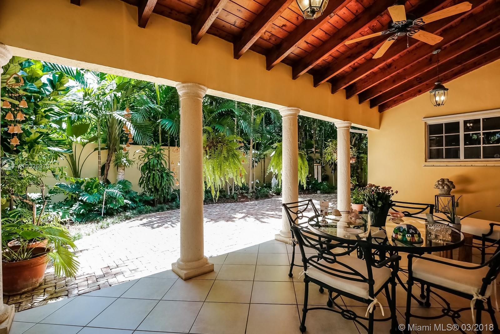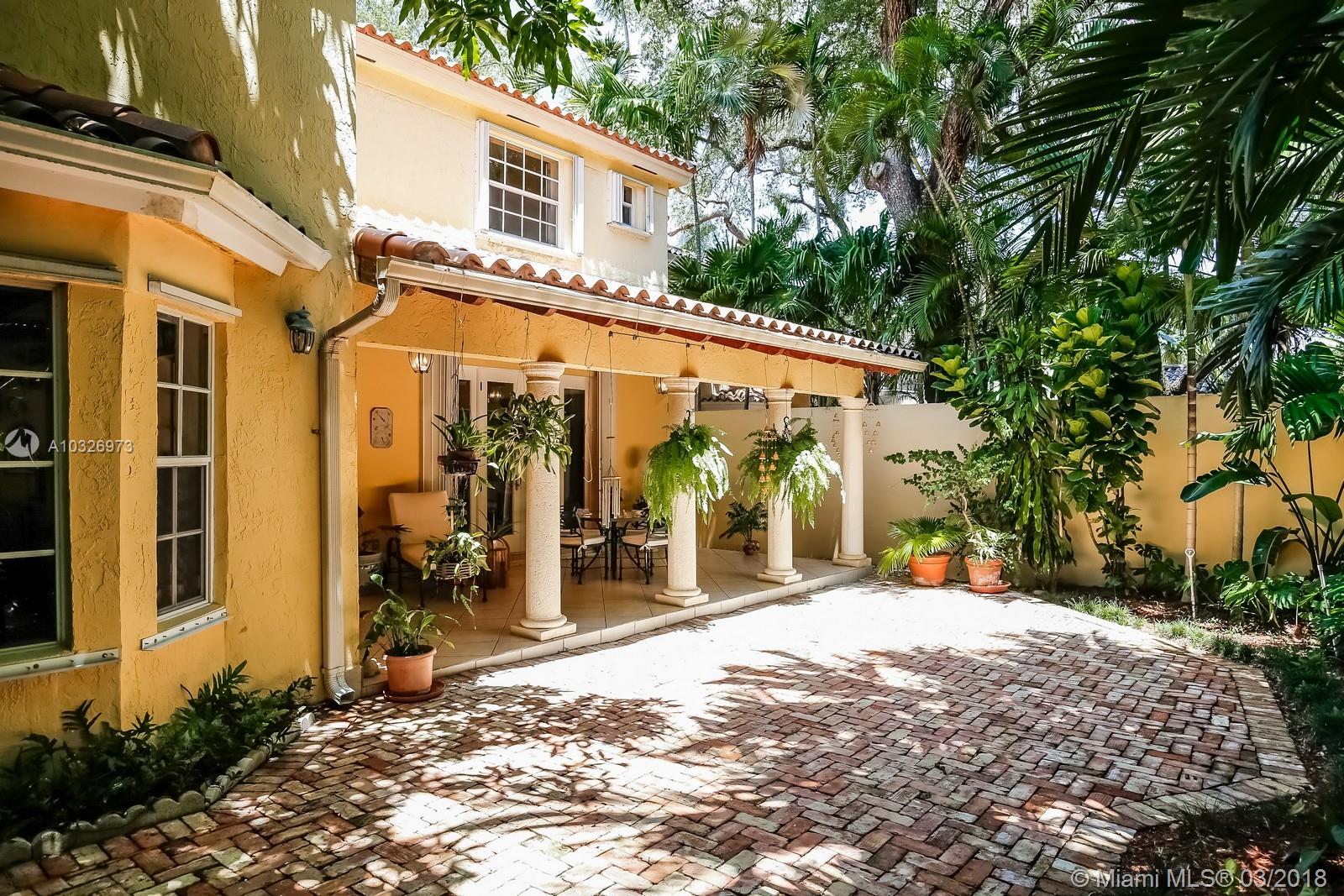 GREAT OPPORTUNITY! Lovingly maintained by the original owner. Superb layout with light filled open spaces. Great room opens to an inviting and spacious covered terrace with a lush garden, accented by by Chicago brick. Working fireplace in the double story living room. One bedroom with bath on the 1st floor and 3 up including a very large master with an adjacent terrace for morning coffee and newspaper! Entire property is walled and gated for privacy and security. Best of all it is on spectacular Espanola Drive, North Coconut Grove's premier street. Just minutes to Brickell, Downtown, Village Center and the best beaches and watersports. Walk to Biscayne Bay (but not in a flood zone!) Ransom school, Fresh Market, Yacht Clubs, waterfront dining +/- 1 mile away!