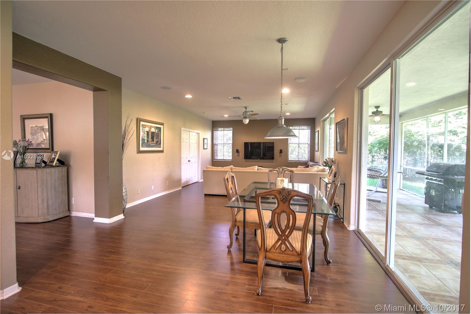 Enjoy living in this beautiful two story home of approx. 5000 total sqft. 6 bedrooms, 4 bathrooms, 42" wood cabinets, granite counter tops, newer top of the line SS appliances, wood floors, high ceilings, large kitchen & family room, lots of closet space, accordion shutters, 2 newer A/C, Cul-De-Sac oversize 10,000+sqft pie shape fenced lot, large covered screed patio with spa, lushly landscaped with plenty room for a pool. Located on a Resort Style gated community with clubhouse, 3 pools, mini-golf, waterpark, soccer and baseball field, basketball court and excellent school district. easy to show!!