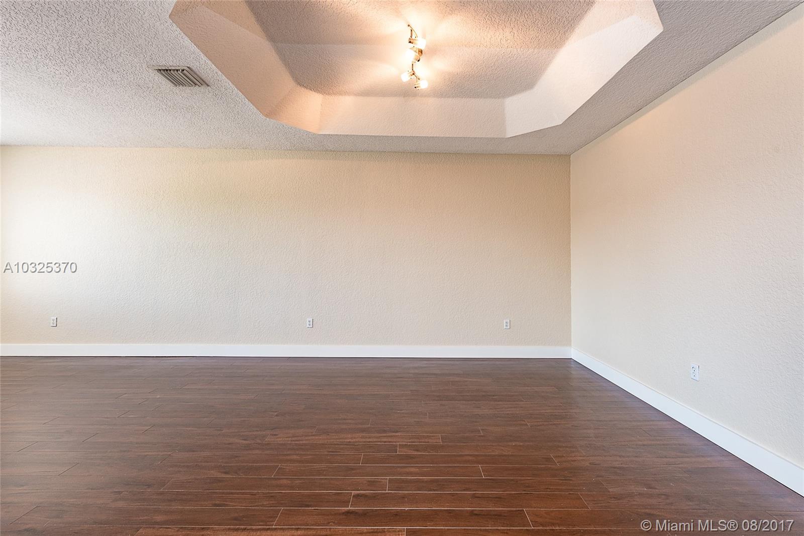 Beautiful home on a corner lot, located at one of the most prestigious communities in Doral. This property is listed as 3 bedrooms + Den, 3 bathrooms. Remodeled Kitchen, Freshly painted, wood laminated on first floor and carpet on second floor, accordion hurricane shutters. Ready to move in. Close to prime schools, shopping and restaurants.