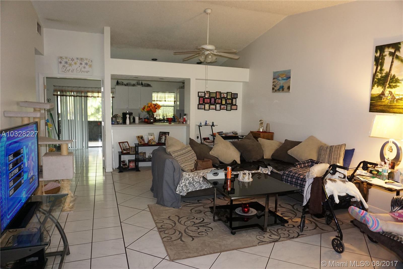 Charming 3 bedroom, 2 bath house in the beautiful area of Coral Springs. Vaulted ceilings, large living & dining room, screened patio and big yard great for entertaining. Bonus room in the garage and room for a car. No association, accordion shutters, extra storage room built on side of house.
