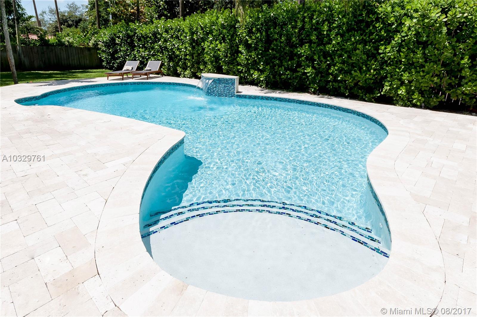 Miami Shores at it's best! Facing a beautiful park ...walkable to Starbucks & shops in the Heart of the neighborhood. HUGE fenced 14,000 sq.ft. YARD offers two areas for entertaining, landscaped for privacy...Open floor plan, large updated eat-in kitchen w/adorable breakfast nook & island. Gorgeous large pool area & outdoor living w/covered trellis. Salt water system w/tumbled marble deck. 4 true bedrooms,w/TWO master suites +Walk-in closet w/built-ins. Oversized 2 car garage w/lots of storage/built-in cabinetry. Family room faces pool w/half bath. New Impact Windows and Doors! Great home!