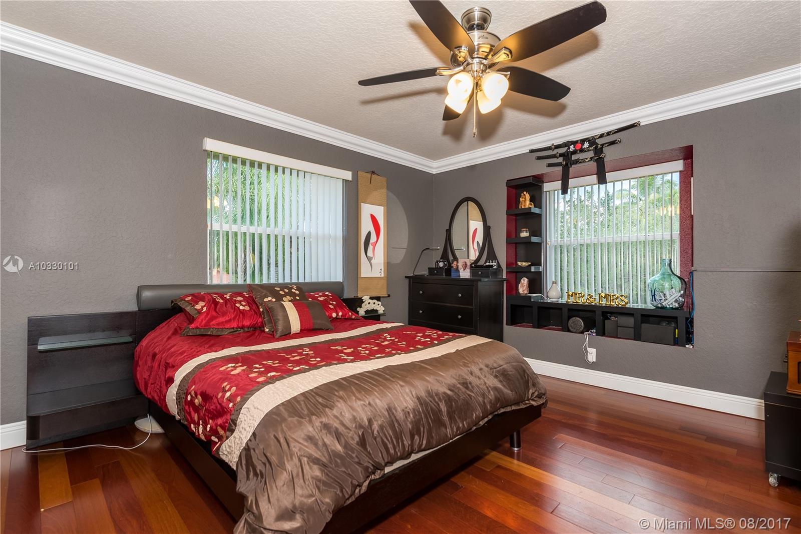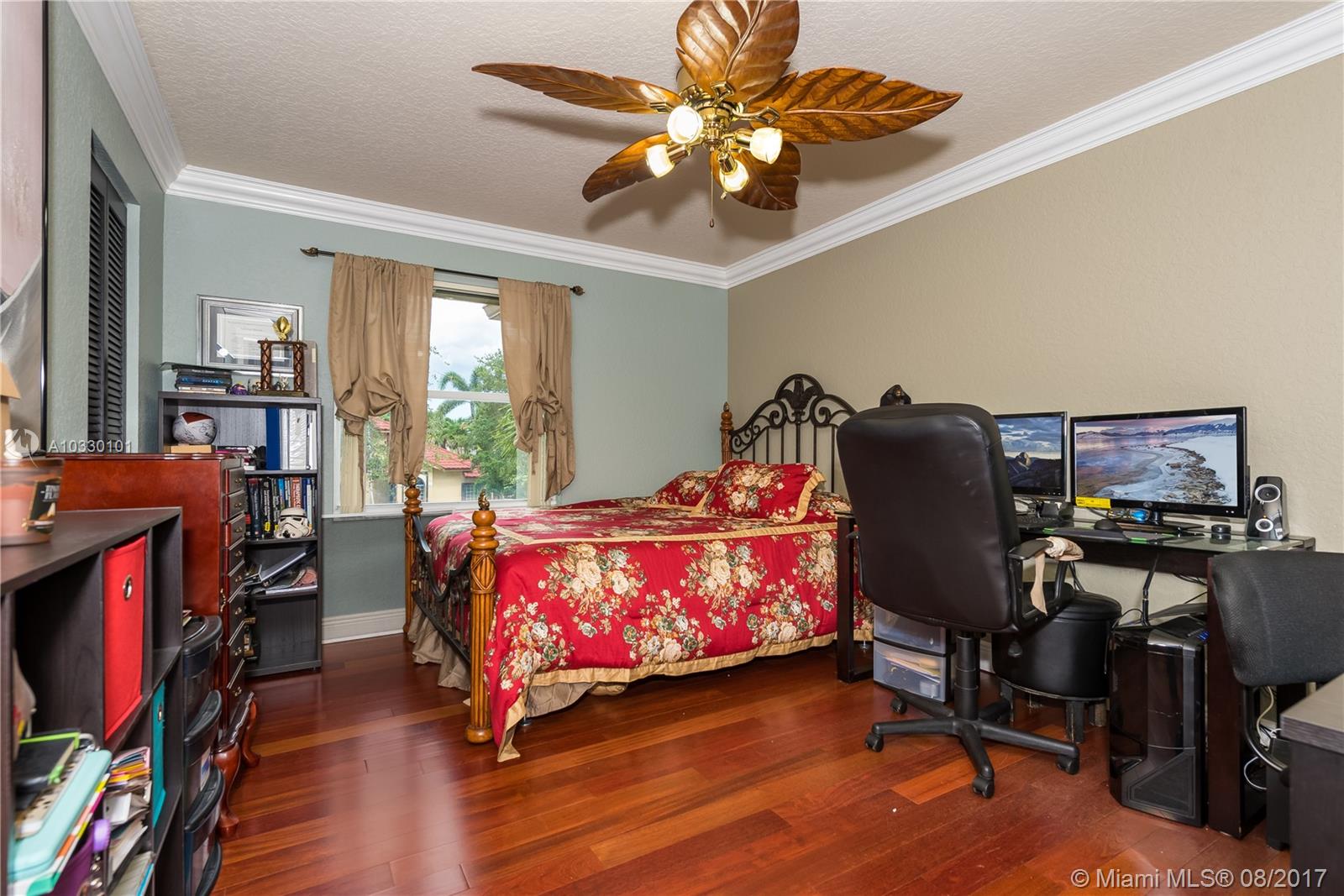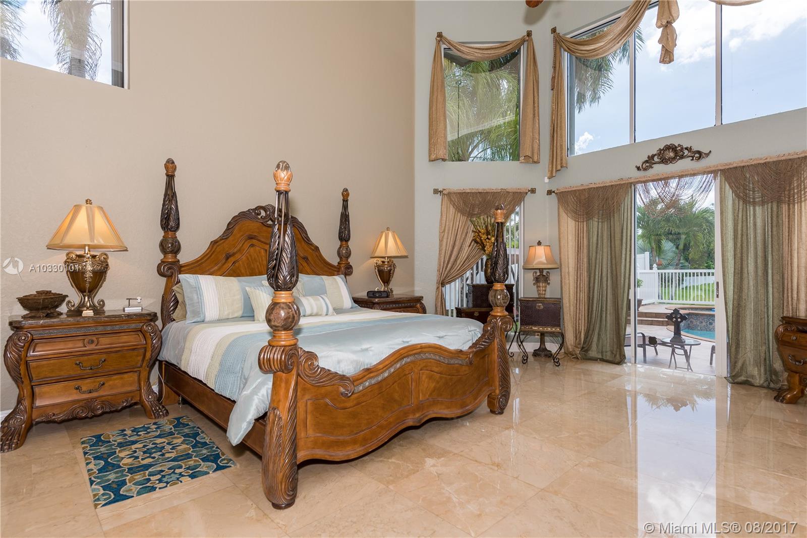 Resort living awaits you in one of the largest and gorgeous custom built homes in Silver Lakes. This home features crema marfil marble throughout the first floor, extra-large Laundry room with tall built-in cabinets, double W/D, eat-in kitchen with granite counters, high-end stainless steel appliances. Expansive Master Suite & Office are on the first level. Second level has Brazilian hardwood cherry floors, large balcony overlooking lake with lighted fountain. 3 bedrooms are spacious and a fantastic play/Billiard room. Breathtaking patio and pool area with plenty of space to entertain. Comcast Internet included with HOA. Panel shutters first floor/Accordion shutters second floor. Beautifully landscaped with LED lighting. This home has it all!