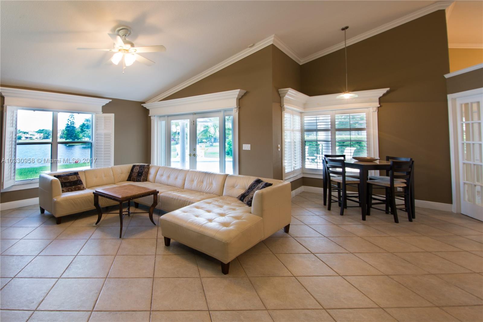 A rare find.....this 4 bedroom 3.5 bathroom POOL/LAKEFRONT Executive home is located in the most desirable community in Davie, FOREST RIDGE - OLD ORCHARD! This home has the most BEAUTIFUL LAKE VIEWS as the property is situated on the large part of the lake so you have views from all living areas in the home and master bedroom! HUGE master bedroom with a sitting areas and remodeled bathroom creates the one of a kind master bedroom everyone is looking for with FRENCH DOORS leading into it! Inside laundry room, PLANTATION SHUTTERS on most windows! Located in TOP SCHOOL district and centrally located! Seller will entertain a seller contribution to buyer for updating with an acceptable offer.