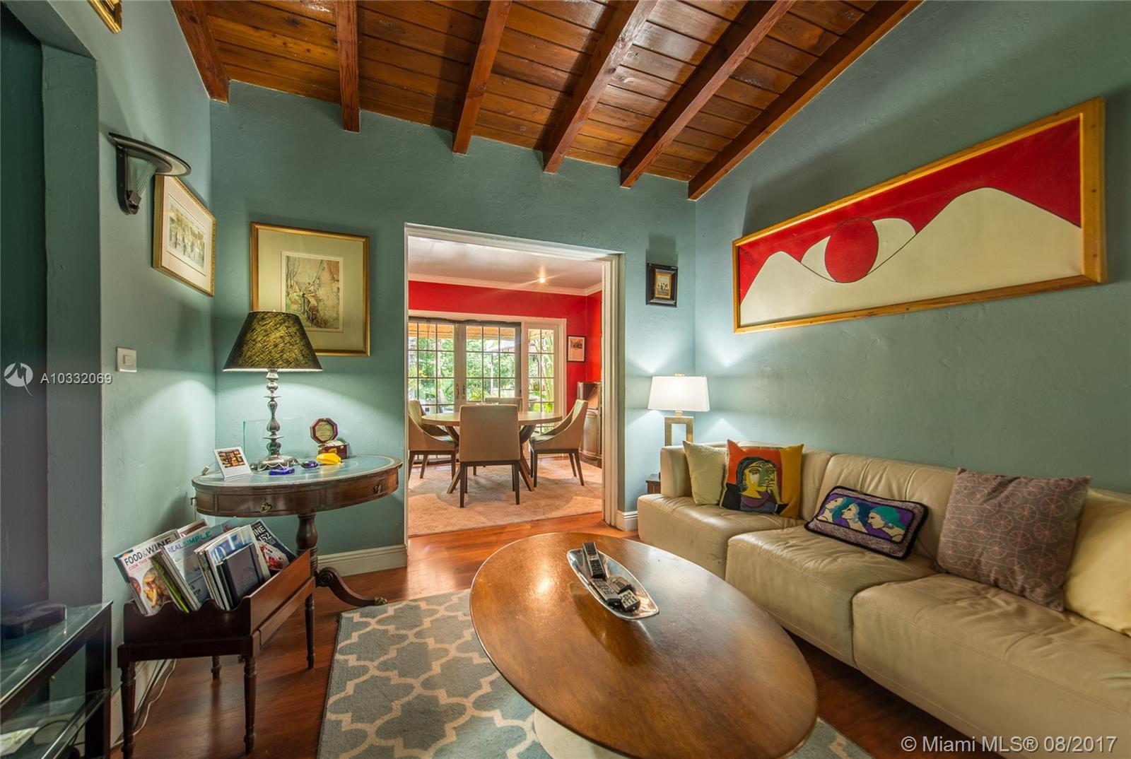 Classic 1948 bungalow, set within a lush botanical garden in prestigious South Coconut Grove. Gated 15,000 SF lot with ample room for expansion of current home. Original architectural details include vaulted wood beamed ceilings, wood & terrazzo floors, Dade County Pine paneling and Old Miami-style screened porch. French doors open to expansive tropical oasis which surrounds free-form pool with waterfall. 3 BR/ 1 BA + 1CG. Close to the Grove village center and minutes to downtown, MIA and the Beaches.