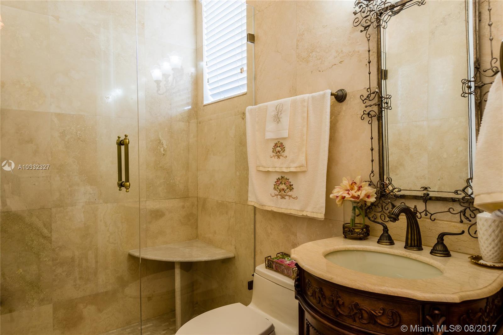 Elegant Mediterranean Estate. Situated on a pristine corner lot in N. Pinecrest. Upon entering this luxury estate, you will enjoy feature such as a exquisite flowing fountain, dramatic 2-story foyer & grand living room w/fireplace. This immaculate home features a open gourmet kit. w/top of the line appliances w/ breakfast area, cabinetry & granite counter tops, ornate crown moldings, coffered ceilings, summer kit., courtyard, large suite style bedrooms & grand master suite, marble & hardwood floors, balconies, large pool & spa, manicured grounds.