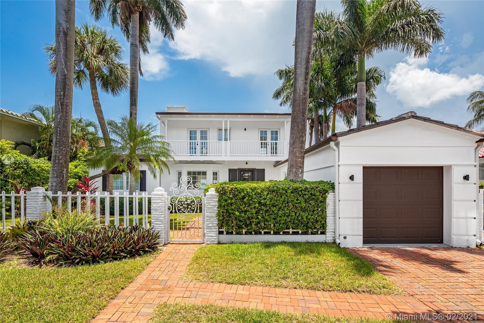 Modern elegance meets Old World Florida charm in this Key West style waterfront home on the guard gated North Bay Island in North Bay Village. Enjoy wide bay & beautiful downtown Miami skyline views and magnificent sunsets streaming across the water. Built in 1940 the 2 story home features hardwood flooring thru out except the kitchen. There are 3 bedrooms 3 baths in the main house, one being situated on the first floor. Two other bedroom suites are located on the 2nd floor all with views to the water and an expansive terrace looking over the water and downtown Miami. There is a 4th bedroom guest suite on the side of the house with a private entrance. Boat dock and lift, hot tub spa in the backyard, room for a small pool, and manicured grounds.
