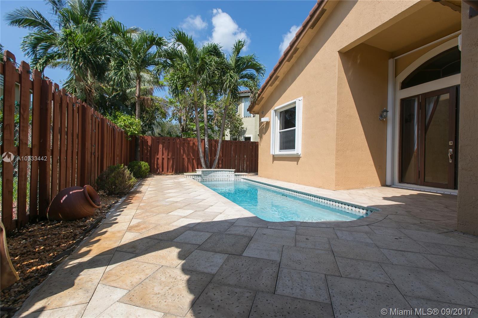 Beautiful Upgraded House. The garage is converted to an additional 5th bedroom. Garage Door outside still operates & has Storage Space. Beautifully located in Vizcaya Community (Santorini Isles) in Miramar. House comes with an upgraded Kitchen, Granite Counter Tops, Tile Floors, High End Washer & Dryer, UV Light installed in A/C for cleaner air, Central Vacuum Wall to make it easy to Vacuum all around the house & Speakers installed throughout the house for entertainment (inside & outside patio area). Gorgeous Salt Water Pool with Large patio space for Entertaining. Accordion Shutters all around & Impact Windows for Front 2 Windows. This means Insurance Discounts & Stress Free Hurricane Preparations. WATCH HD VIDEO TOUR HERE. https://youtu.be/G1jELhZtmMs