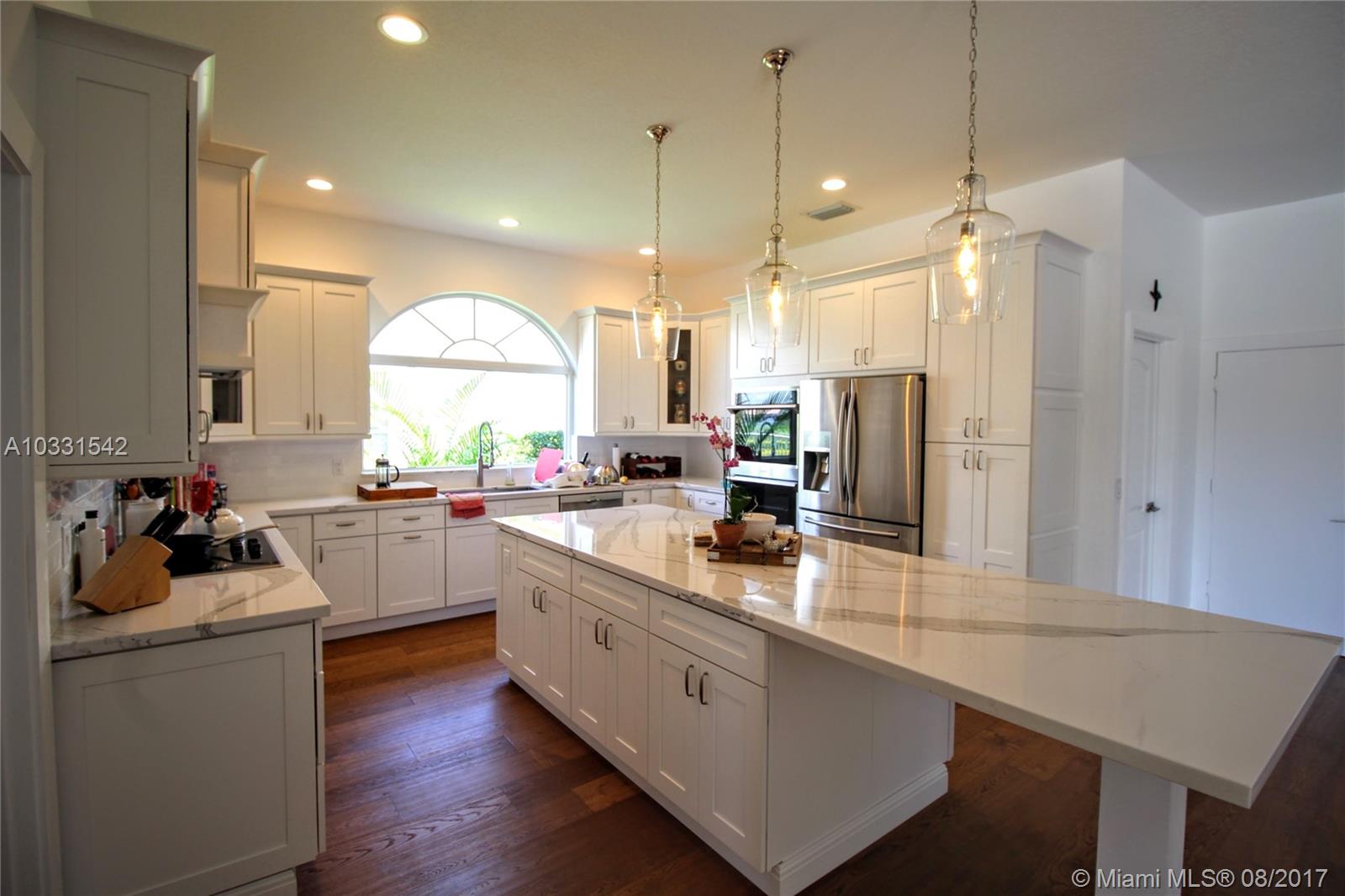 Stunning 4 bedroom 2 bath home located in sought after Stoneridge Lake Estates. This home has been recently renovated to perfection. Very clean home with over sized kitchen w/plenty of wood cabinetry for storage. Counter tops and kitchen island are topped with Quartz with added storage under kitchen island. Engineered wood through the home covering the floors with baseboards. Home features open floor plan overlooking the pool and lake view for your own piece of paradise. Master bedroom has large walk-in closet as well as 2nd closet on opposite side. Large master bath has dual sinks & a standing shower that doubles as a steam room (must see). This home is located in a gated community next to all major highways, shopping, restaurants, movie theater, & more. This home could be yours.