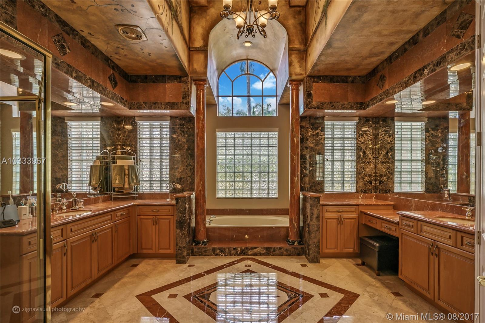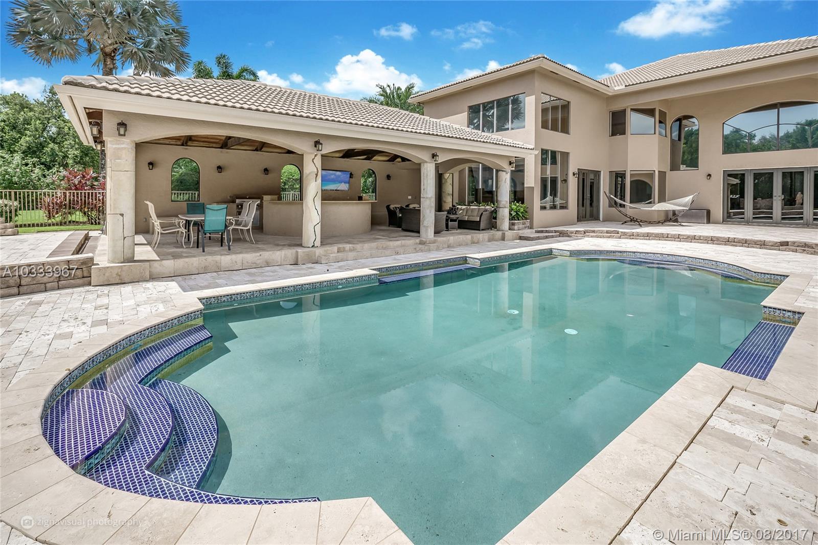 Exquisite Renoir model estate with 6 beds, 5.5 baths, office, formal dining room and loft. Largest model, plus has an entire wing added w/extra bedroom, gym, steam room, in-ground Jacuzzi, and covered outdoor summer kitchen. Features large pool surrounded by Italian Cypress trees. Enter interior to beautiful marble and Brazilian Cherry wood floors, kitchen granite counter tops, designer SS appliances. Huge loft perfect for a kids playroom, pool table. Roman tub in master bath. French doors all hurricane proof, plantation shutters, 20-foot vaulted ceilings, & 3-car garage. Long Lake Estate in A-rated school district, has playground, tennis/basketball courts, 24-hr guard gate & more. PRICED TO SELL!