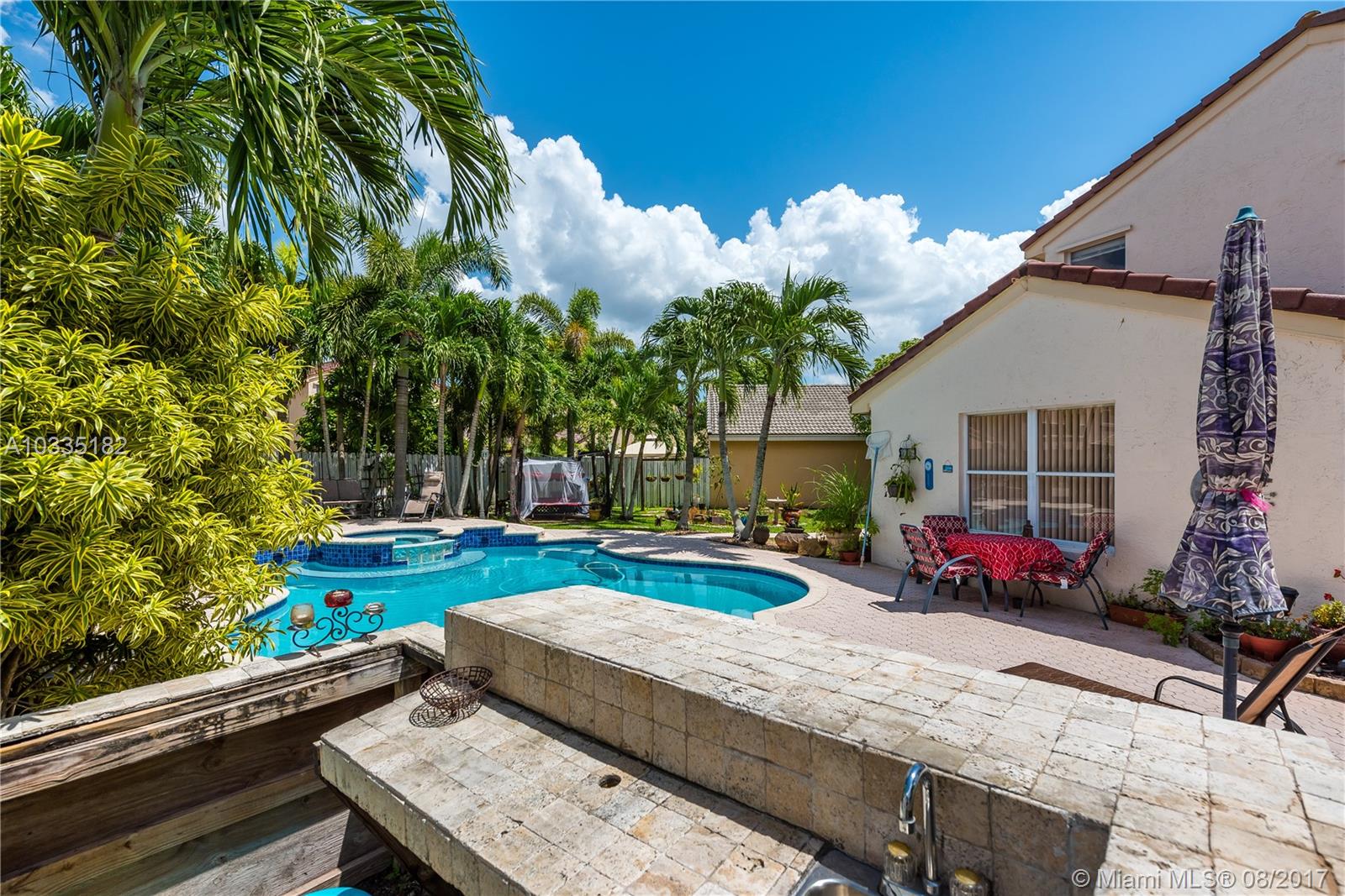 Click on the Virtual Tour and take a 3D walk through of this beautiful home in West Miramar….Enjoy entertaining your family and friends in your personal oasis with a heated pool, spa, garden, and plenty of room for everyone….The upgraded kitchen has wood cabinetry, granite surfaces, stainless steel appliances, and a wine refrigerator…..Bathrooms are upgraded with wood cabinetry and granite counter tops....The whole home has tile floors….The garage has been partially converted so it is 1 car parking, easily converted back to a 2 car garage….Fantastic location close to highways, schools, shopping, entertainment, and places of worship….